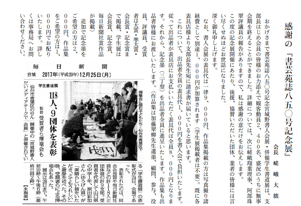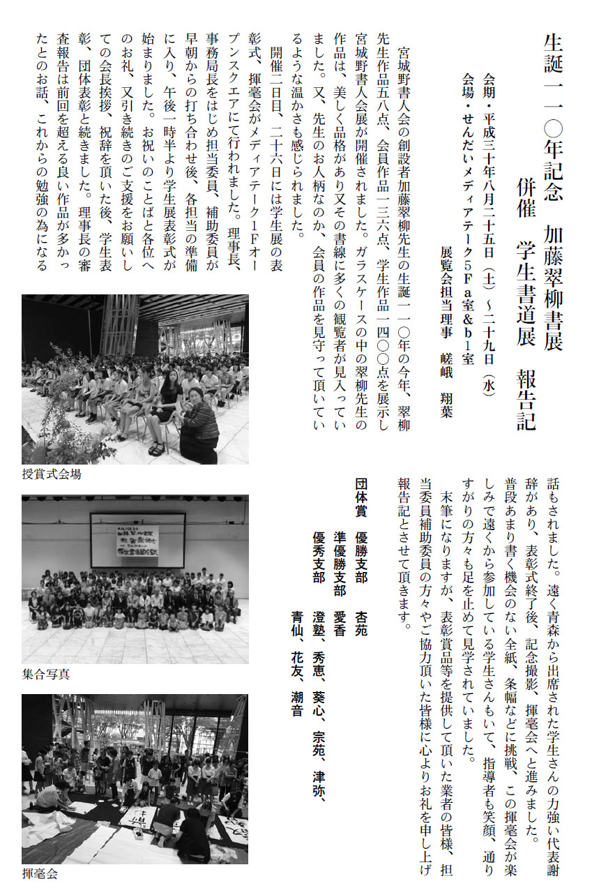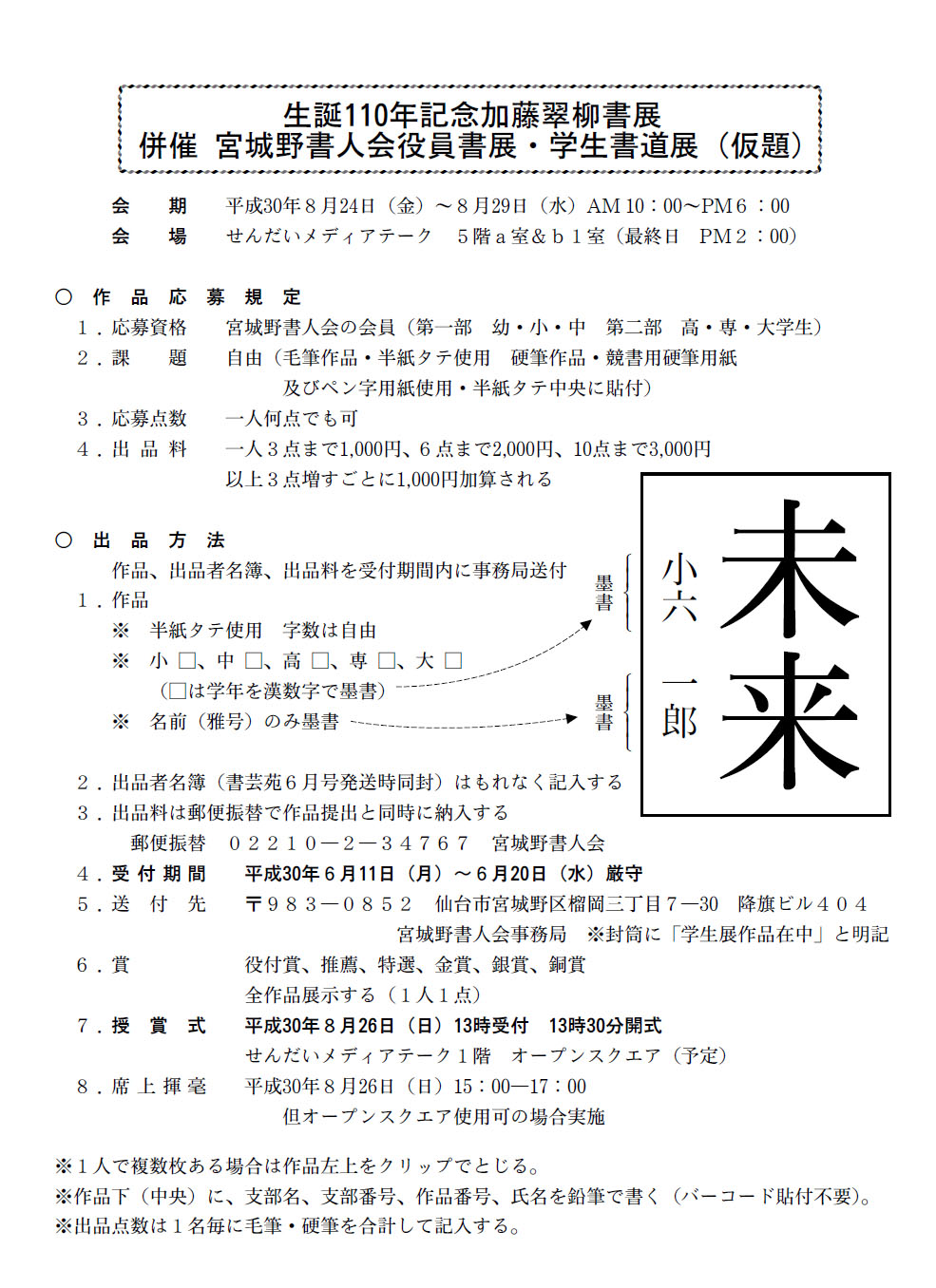 加藤翠柳生誕110年遺墨展・宮城野書人会役員書展・学生書道展 |