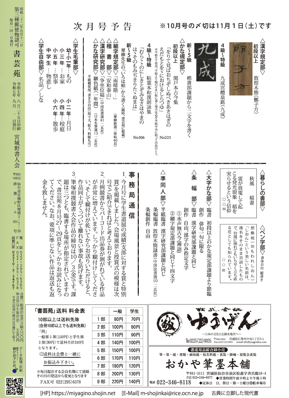 古典臨書研究をベースとして、現代書への展開。漢字、仮名、詩文書、少字・墨象等多彩な書の勉強が可能です。学生部もあります。