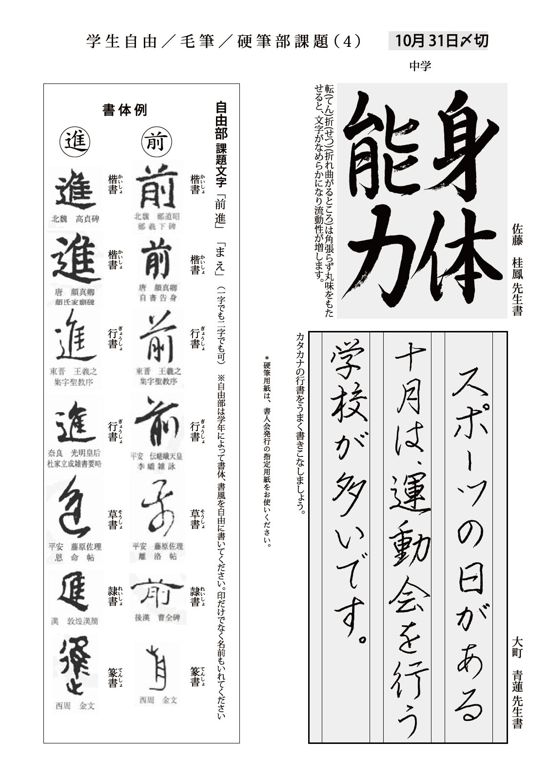 学生部の2024年10月号(931号)の競書課題です。