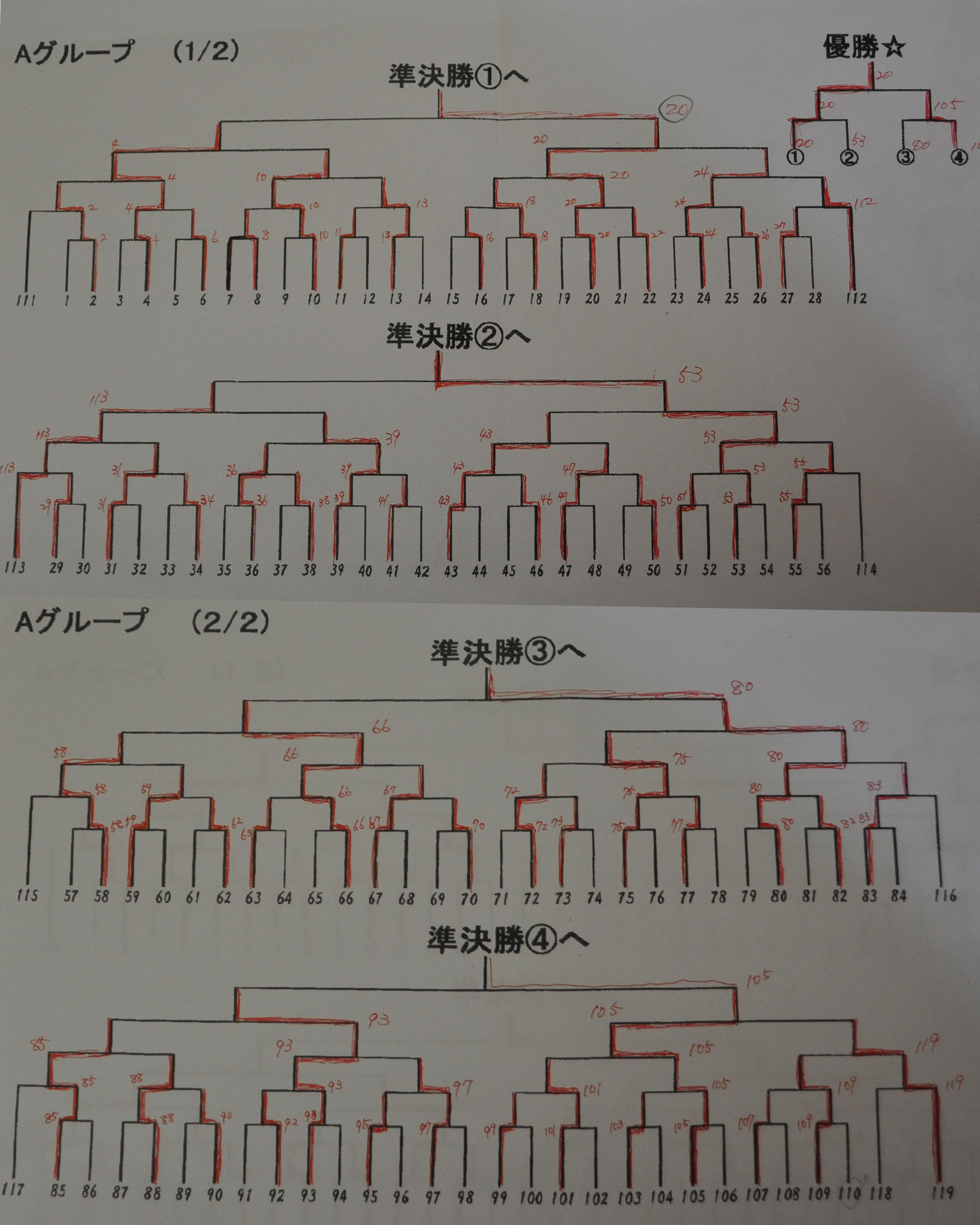 | A | 準々決勝 | ● 004 | 〇 020 | ● 113 | 〇 053 | ● 066 | 〇 080 | ● 093 | 〇 105 |