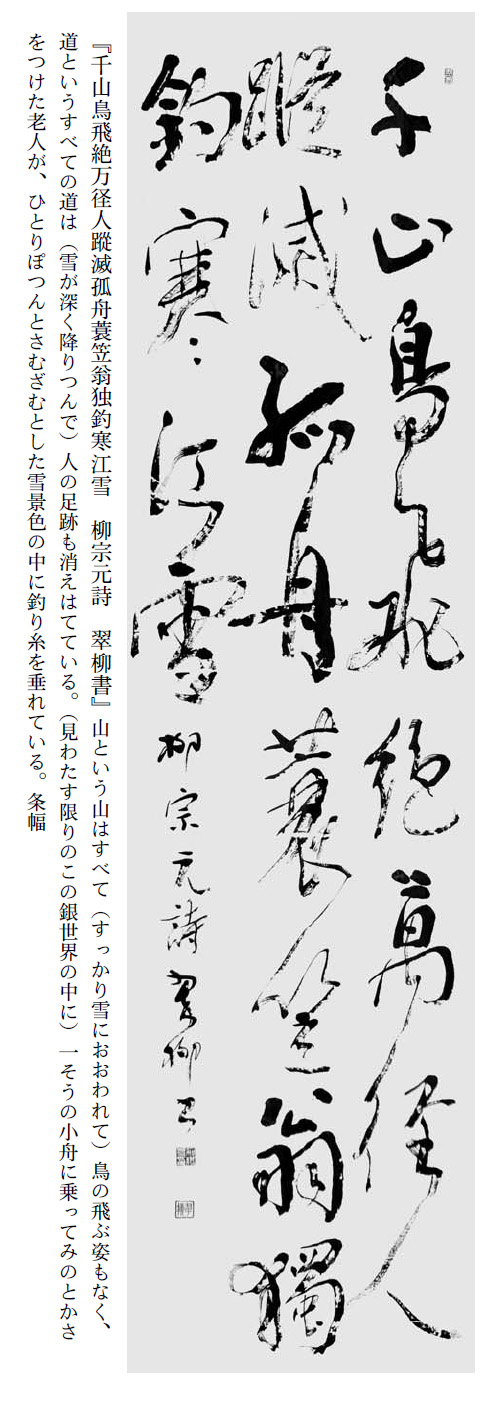 千山鳥飛絶万径人蹤滅孤舟蓑笠翁独釣寒江雪