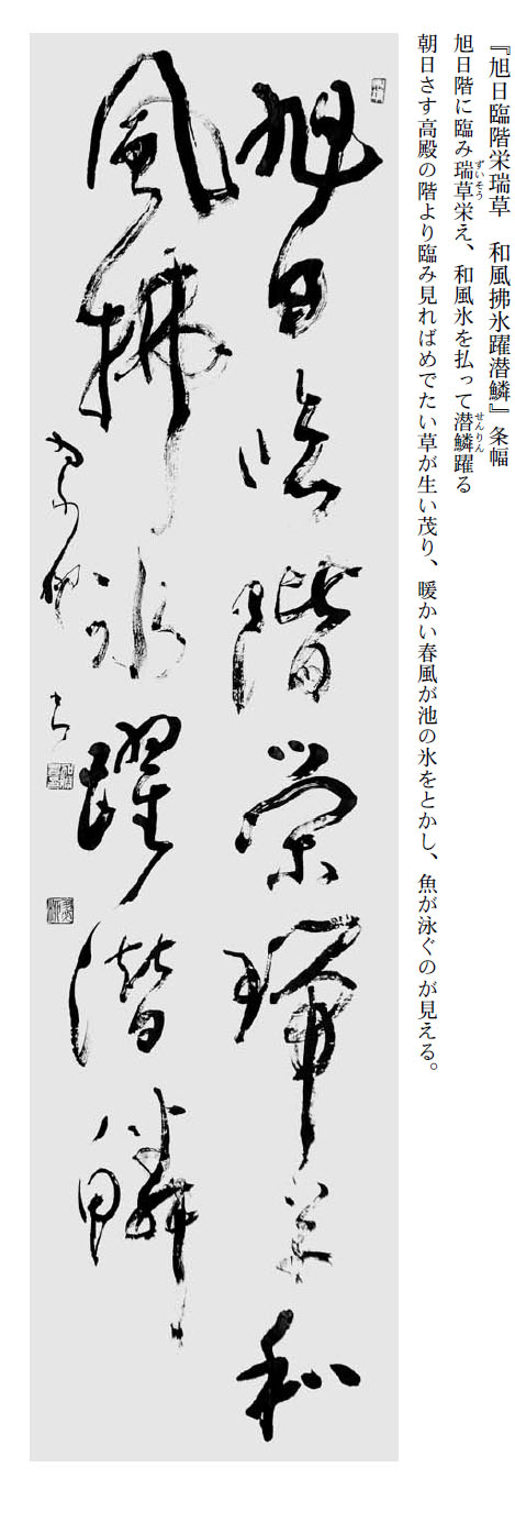 旭日臨階栄瑞草和風拂氷躍潜鱗
