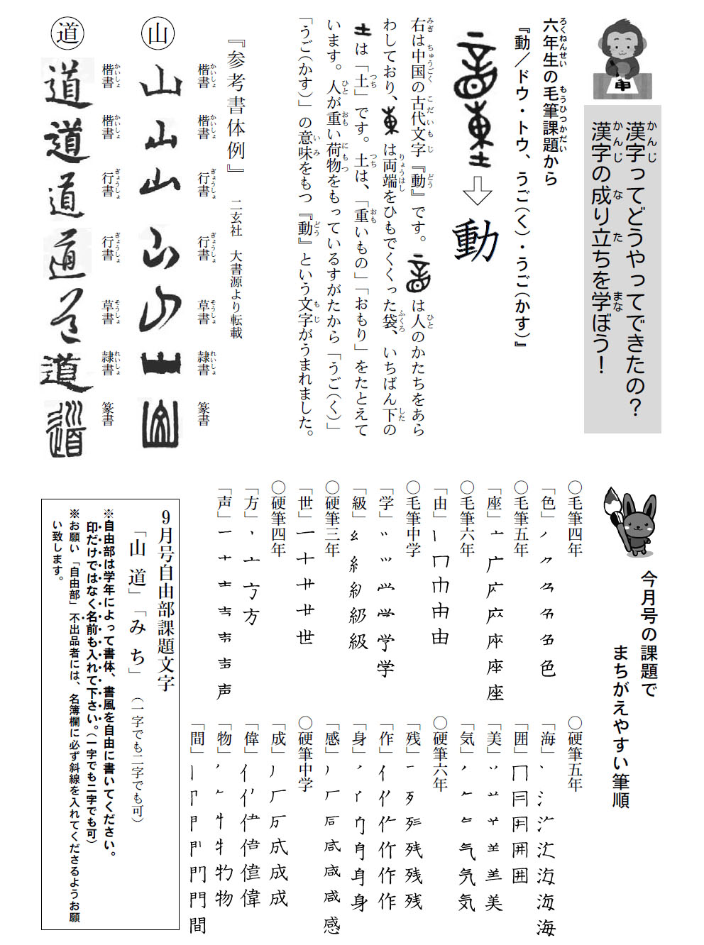 古典臨書研究をベースとして、現代書への展開。漢字、仮名、詩文書、少字・墨象等多彩な書の勉強が可能です。学生部もあります。