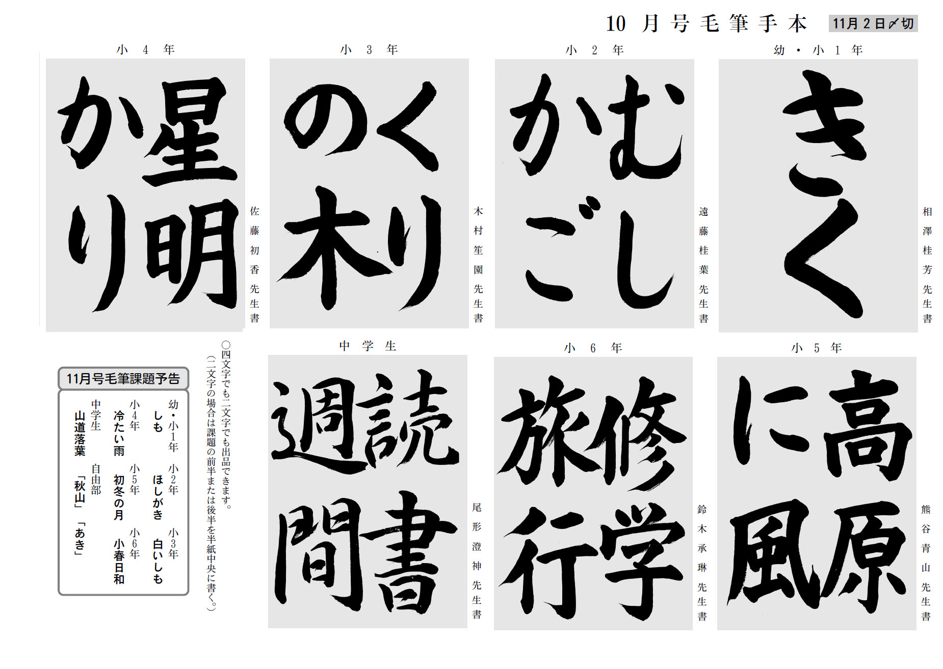 学生部の2017年10月号の競書課題です。