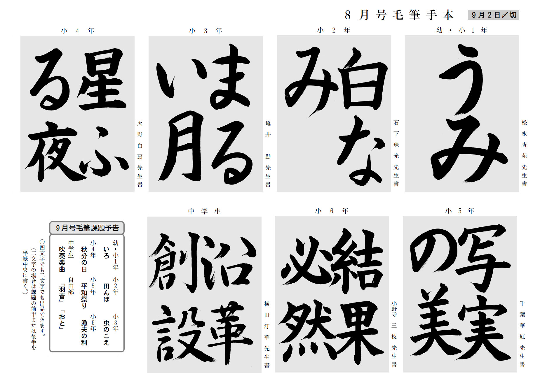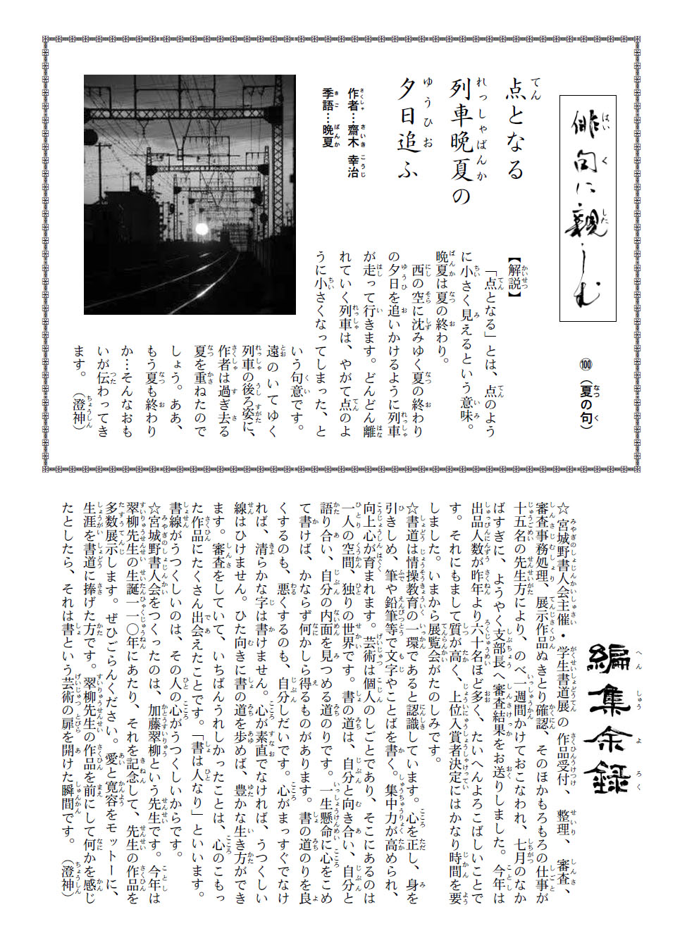 古典臨書研究をベースとして、現代書への展開。漢字、仮名、詩文書、少字・墨象等多彩な書の勉強が可能です。学生部もあります。