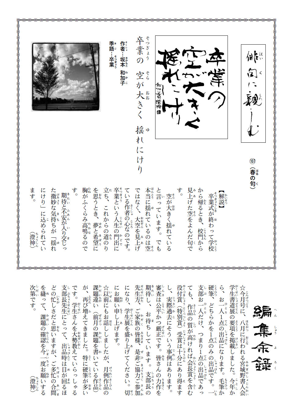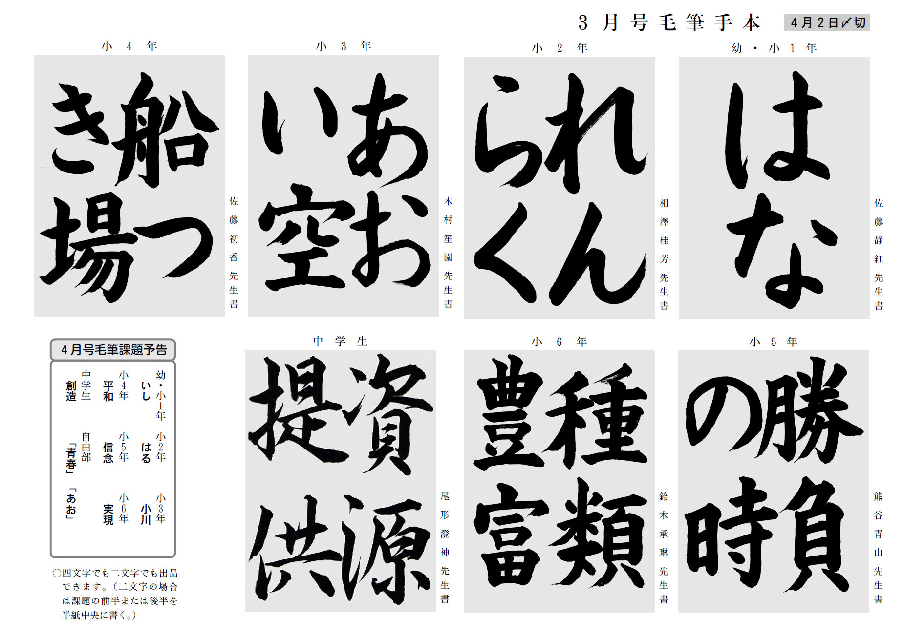 学生部の2019年3月号の競書課題です。