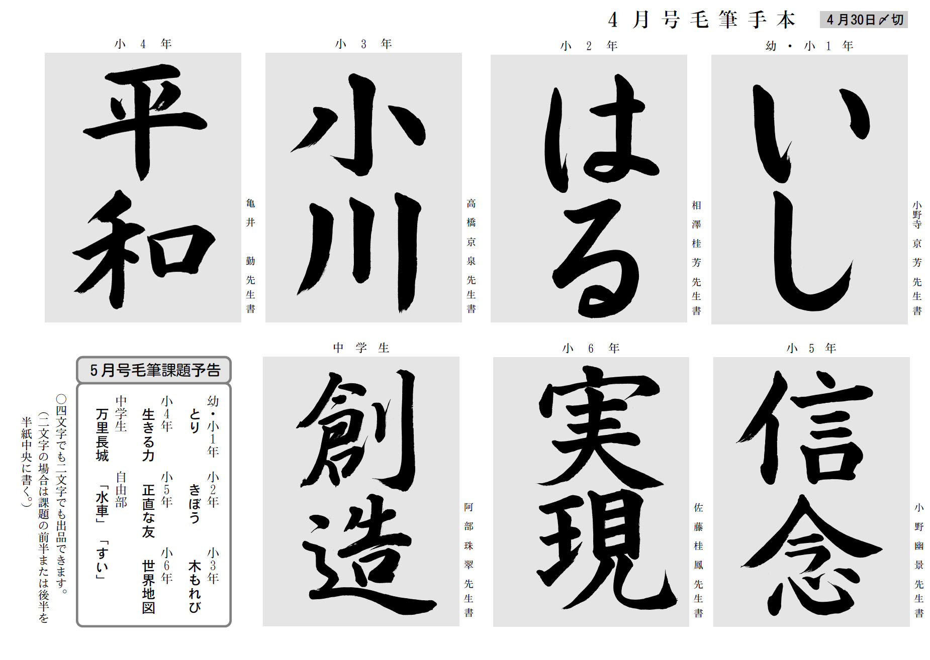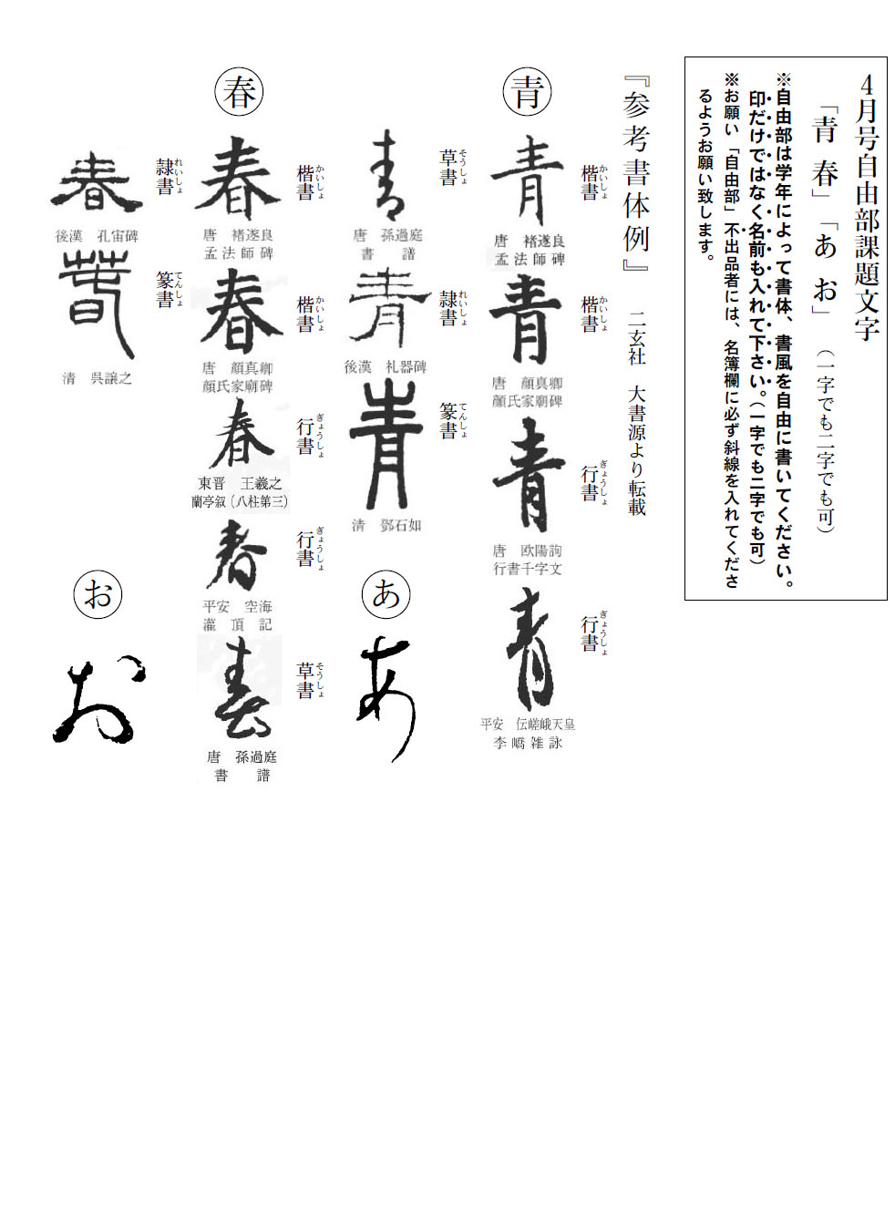 学生部の2019年4月号の競書課題です。