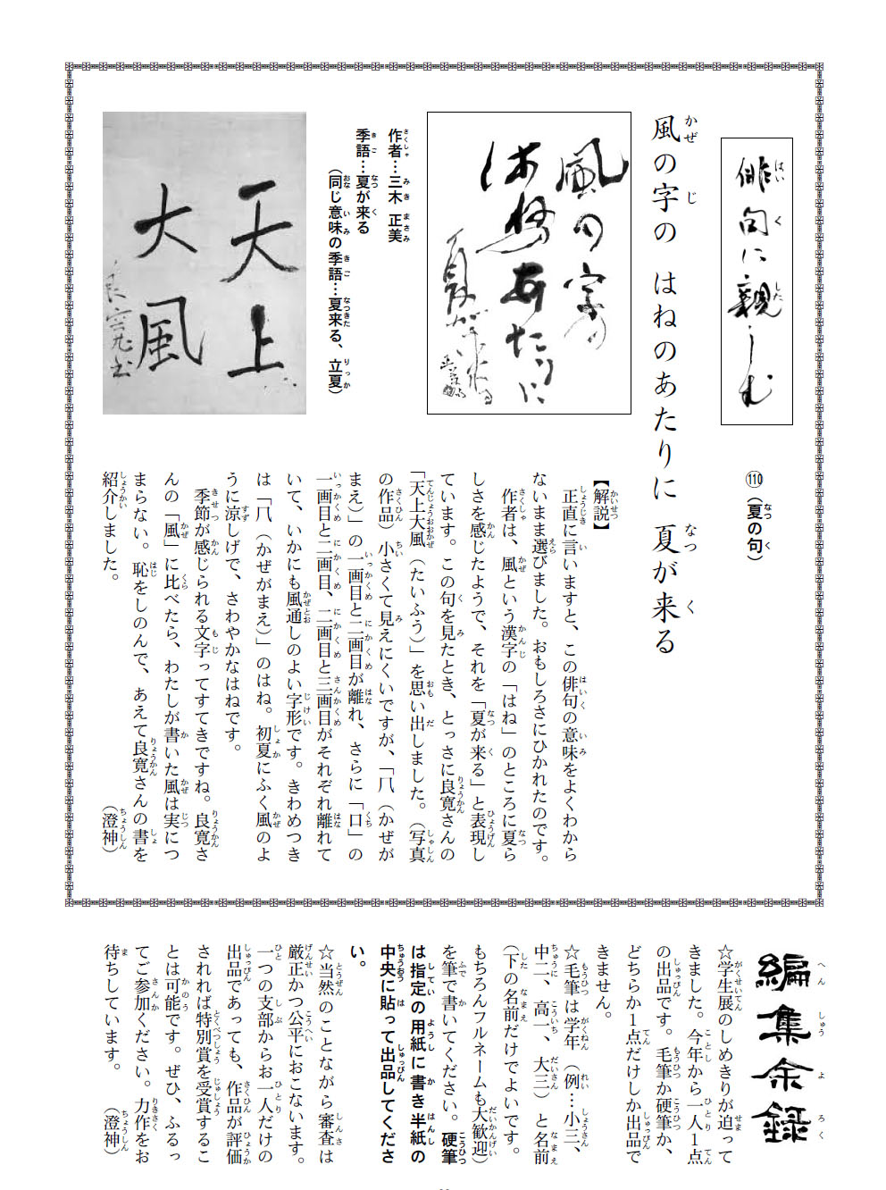 古典臨書研究をベースとして、現代書への展開。漢字、仮名、詩文書、少字・墨象等多彩な書の勉強が可能です。学生部もあります。