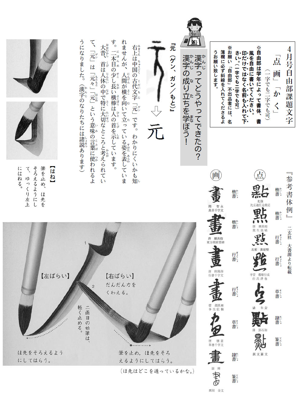 古典臨書研究をベースとして、現代書への展開。漢字、仮名、詩文書、少字・墨象等多彩な書の勉強が可能です。学生部もあります。