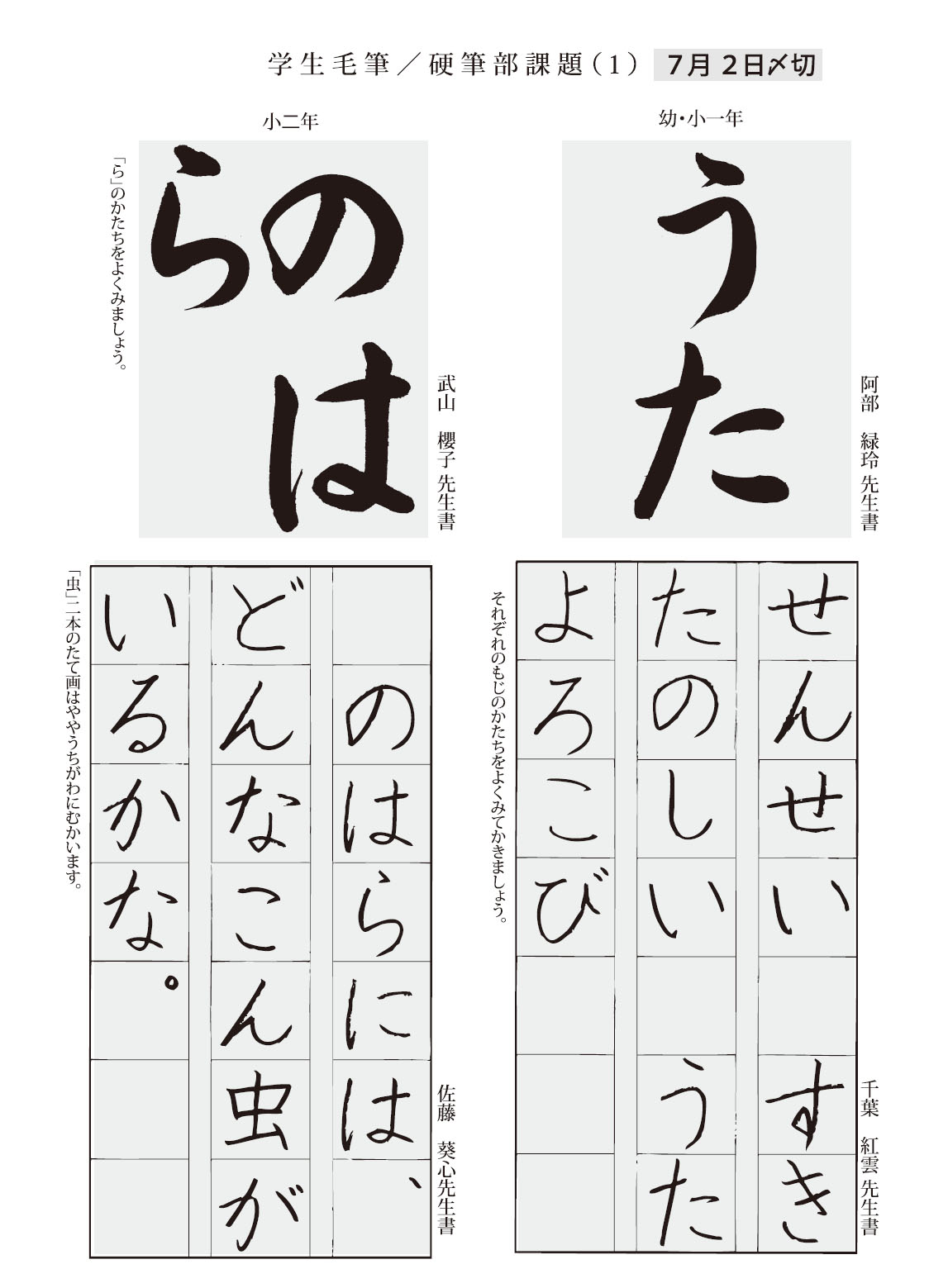 小1年・小2年お手本
