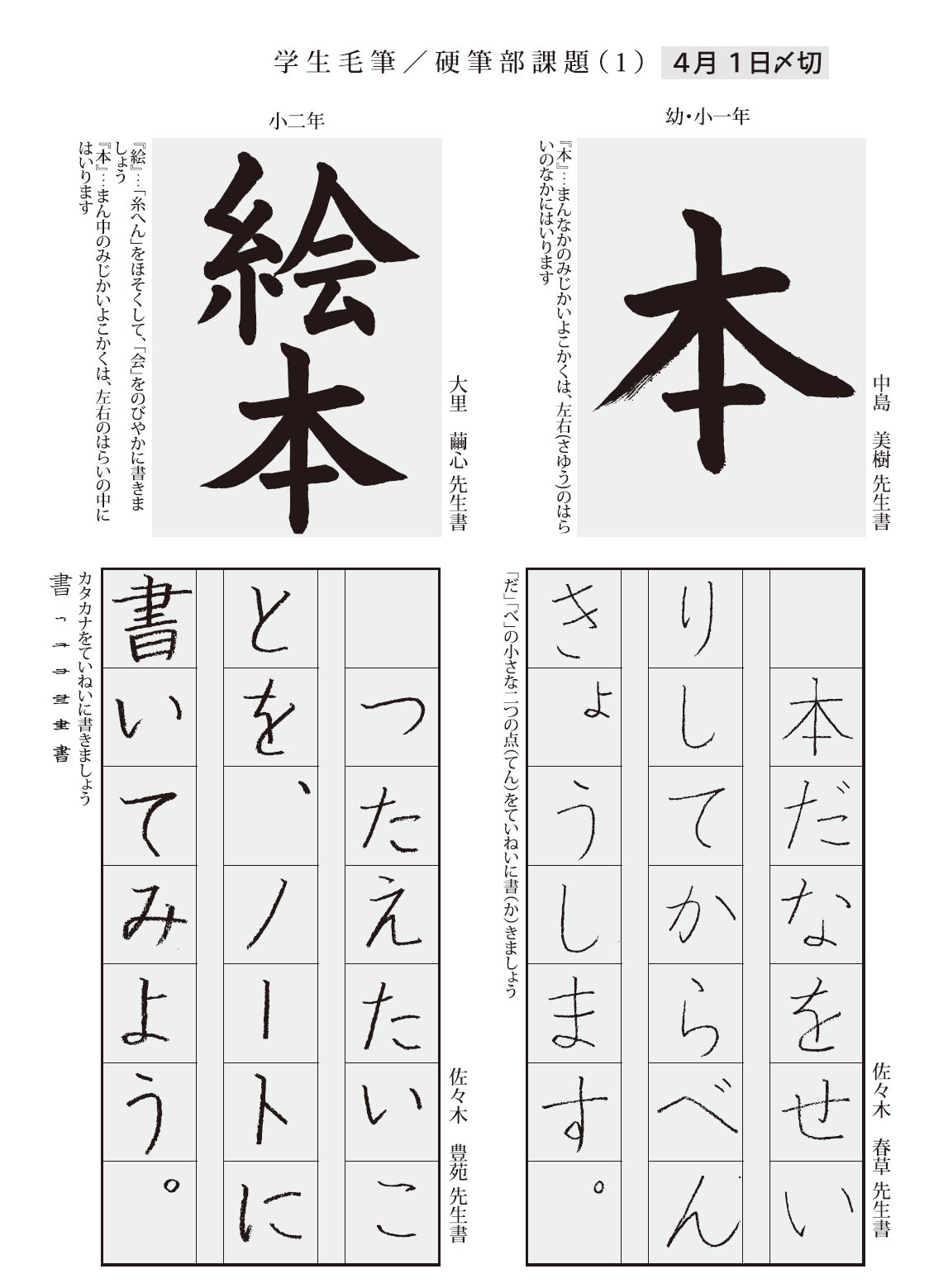 小1年・小2年お手本