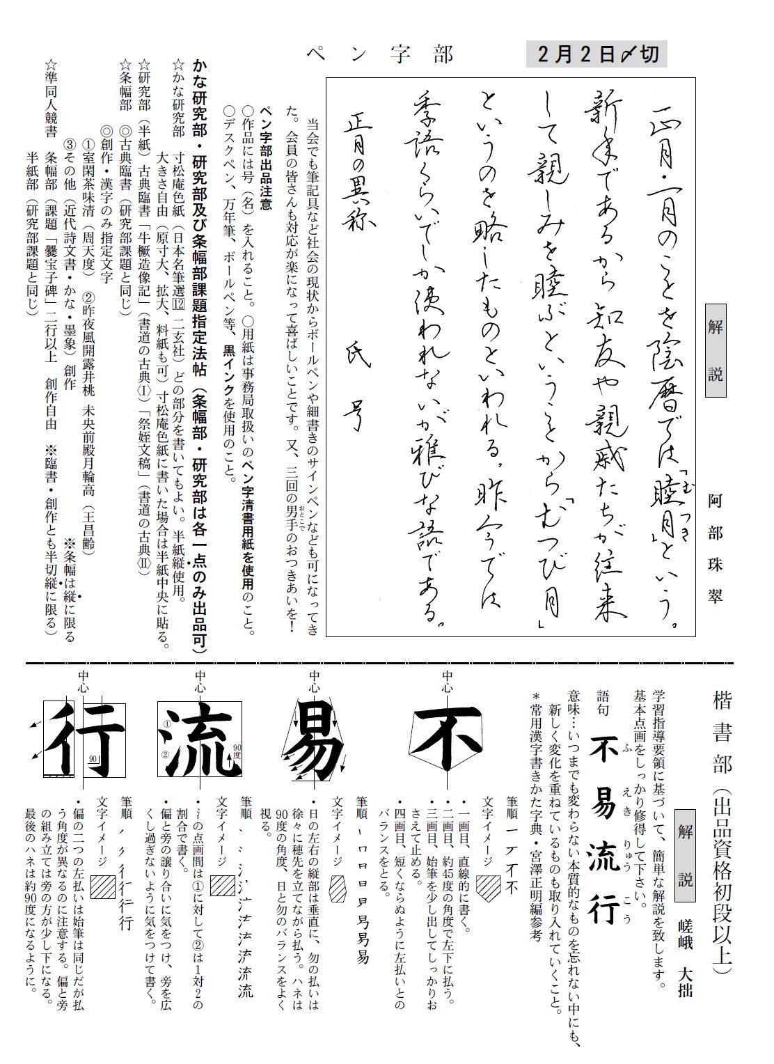 古典臨書研究をベースとして、現代書への展開。漢字、仮名、詩文書、少字・墨象等多彩な書の勉強が可能です。学生部もあります。