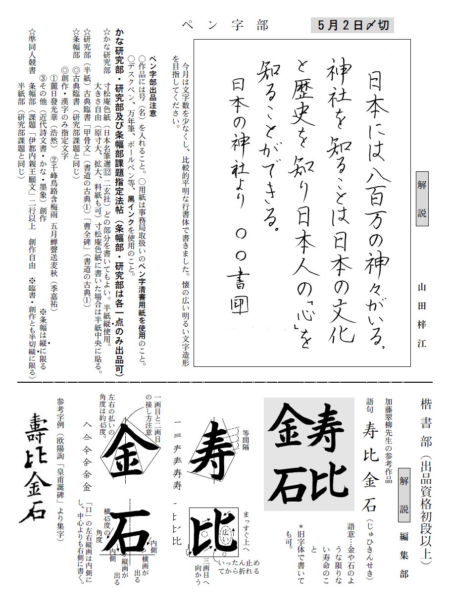 古典臨書研究をベースとして、現代書への展開。漢字、仮名、詩文書、少字・墨象等多彩な書の勉強が可能です。学生部もあります。
