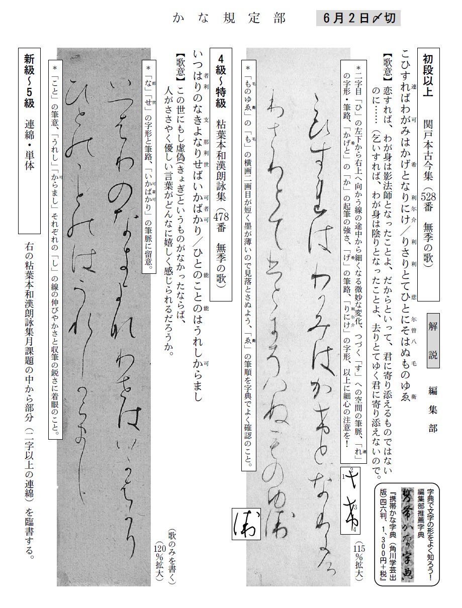 一般部の2016年5月号の競書課題です。