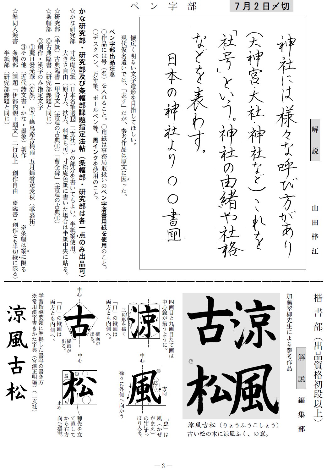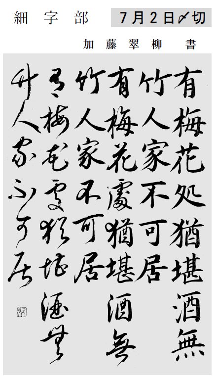 古典臨書研究をベースとして、現代書への展開。漢字、仮名、詩文書、少字・墨象等多彩な書の勉強が可能です。学生部もあります。