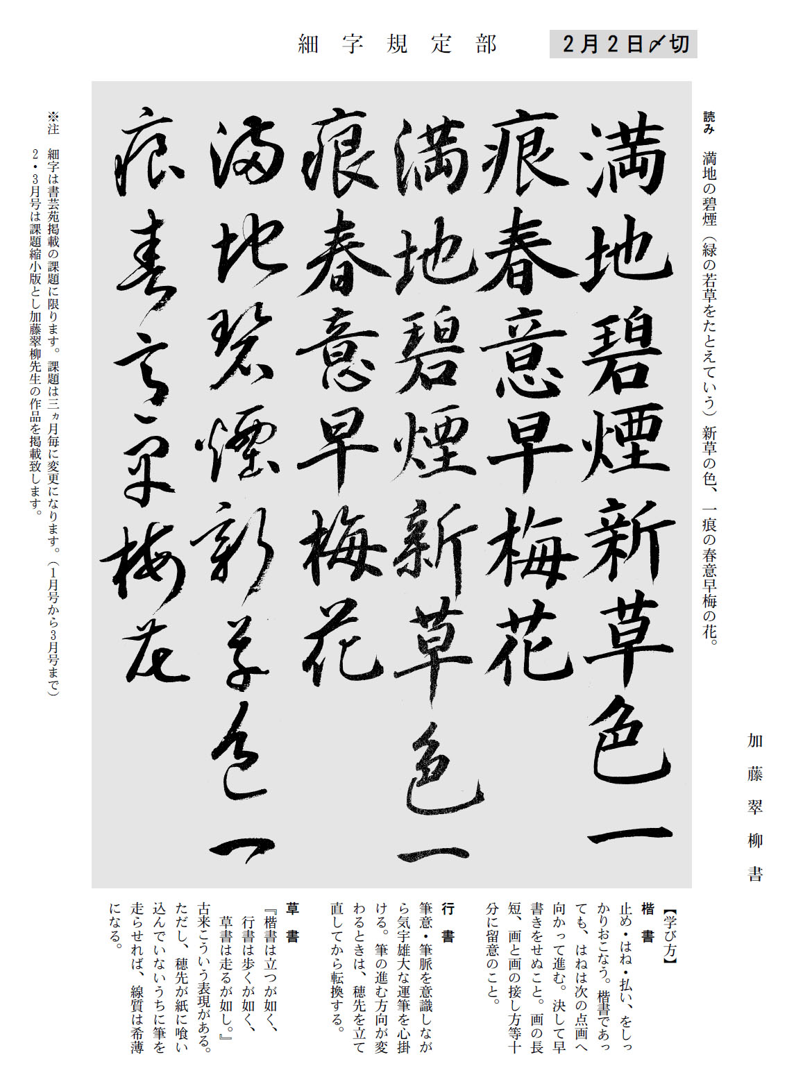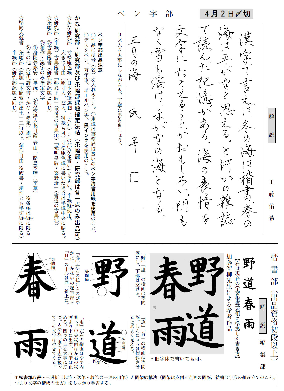 古典臨書研究をベースとして、現代書への展開。漢字、仮名、詩文書、少字・墨象等多彩な書の勉強が可能です。学生部もあります。
