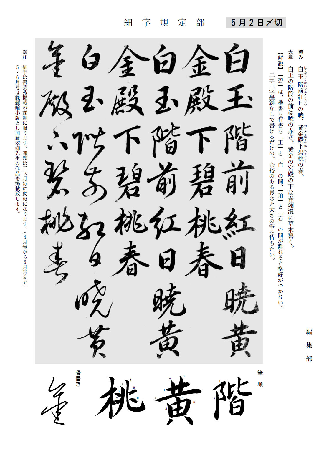 一般部の2017年4月号の競書課題です。