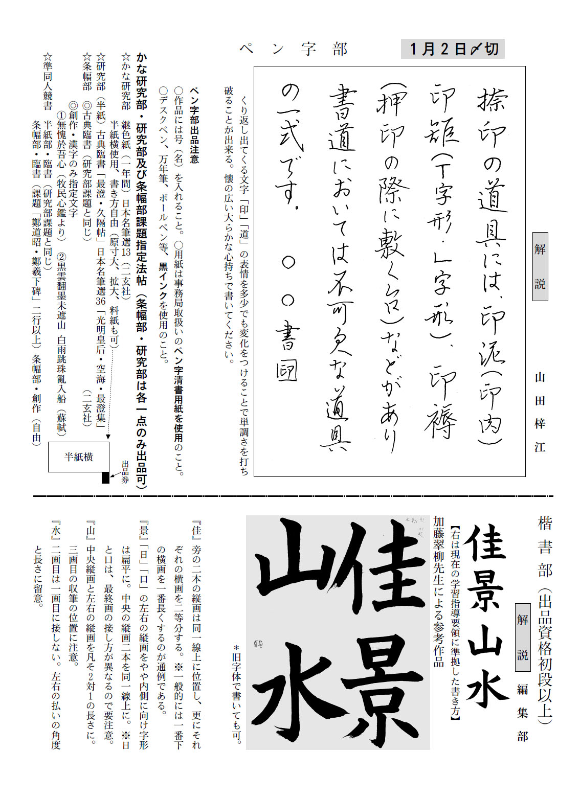 古典臨書研究をベースとして、現代書への展開。漢字、仮名、詩文書、少字・墨象等多彩な書の勉強が可能です。学生部もあります。
