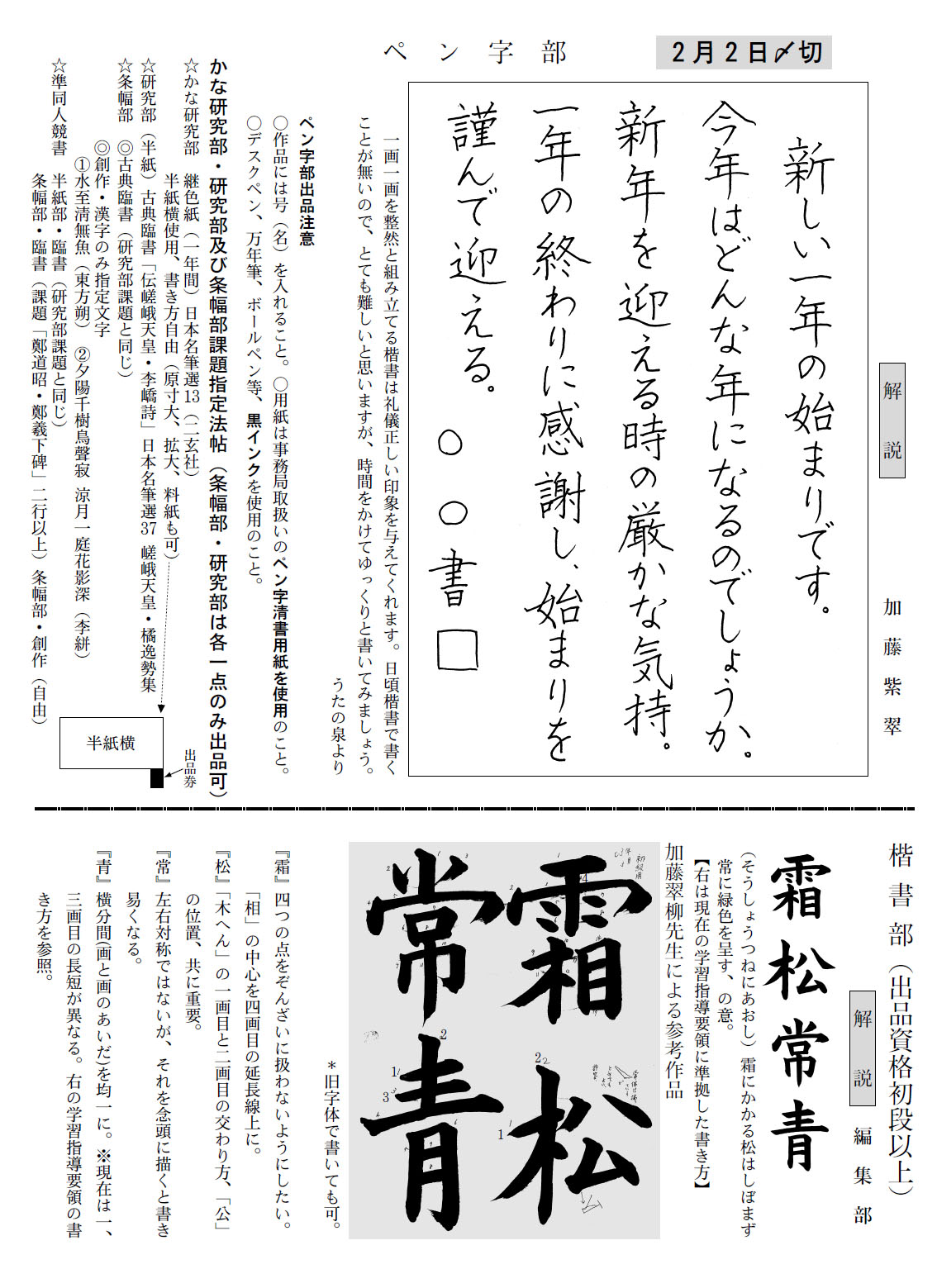 古典臨書研究をベースとして、現代書への展開。漢字、仮名、詩文書、少字・墨象等多彩な書の勉強が可能です。学生部もあります。