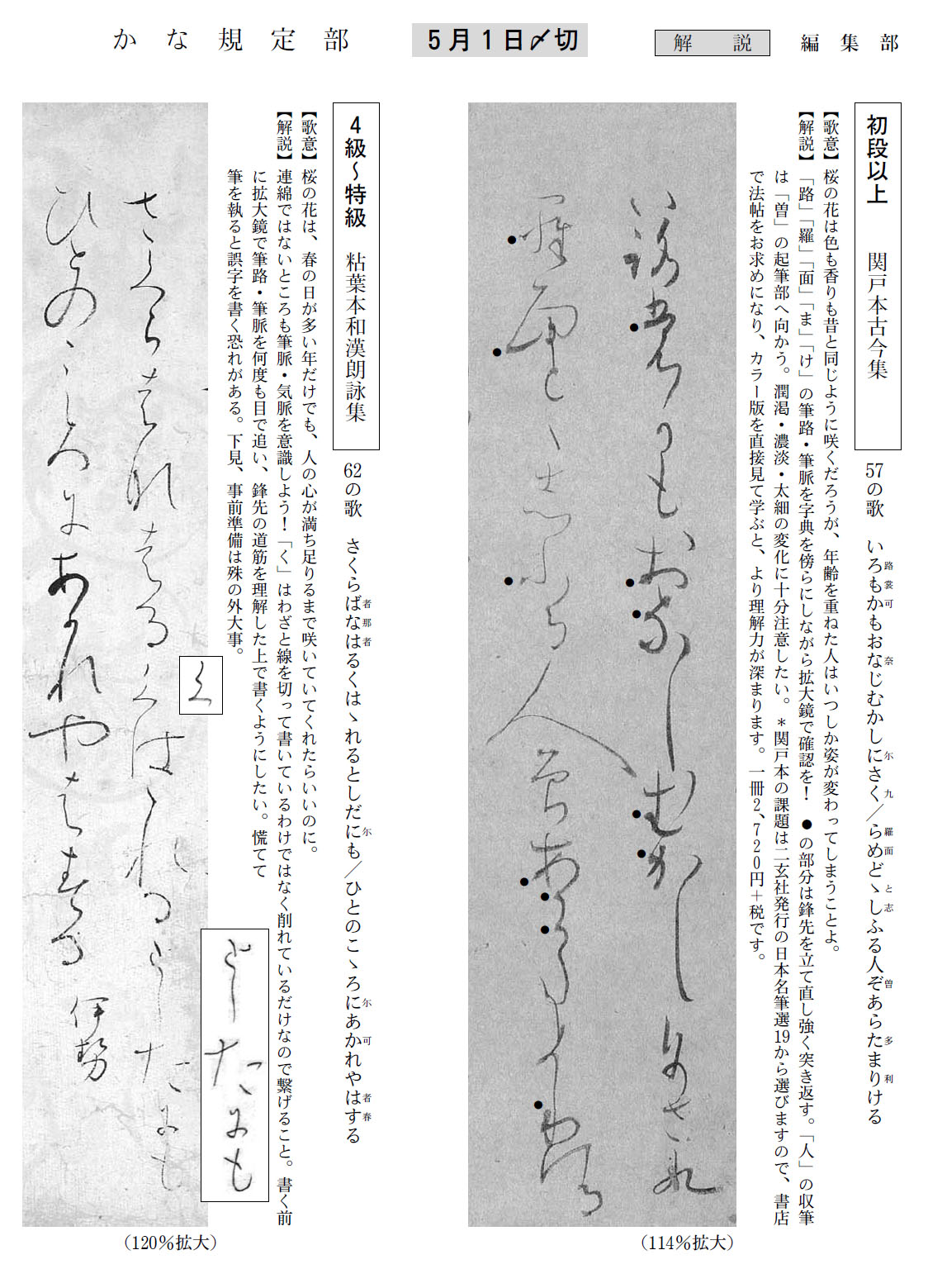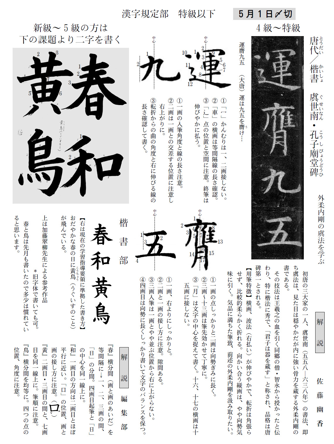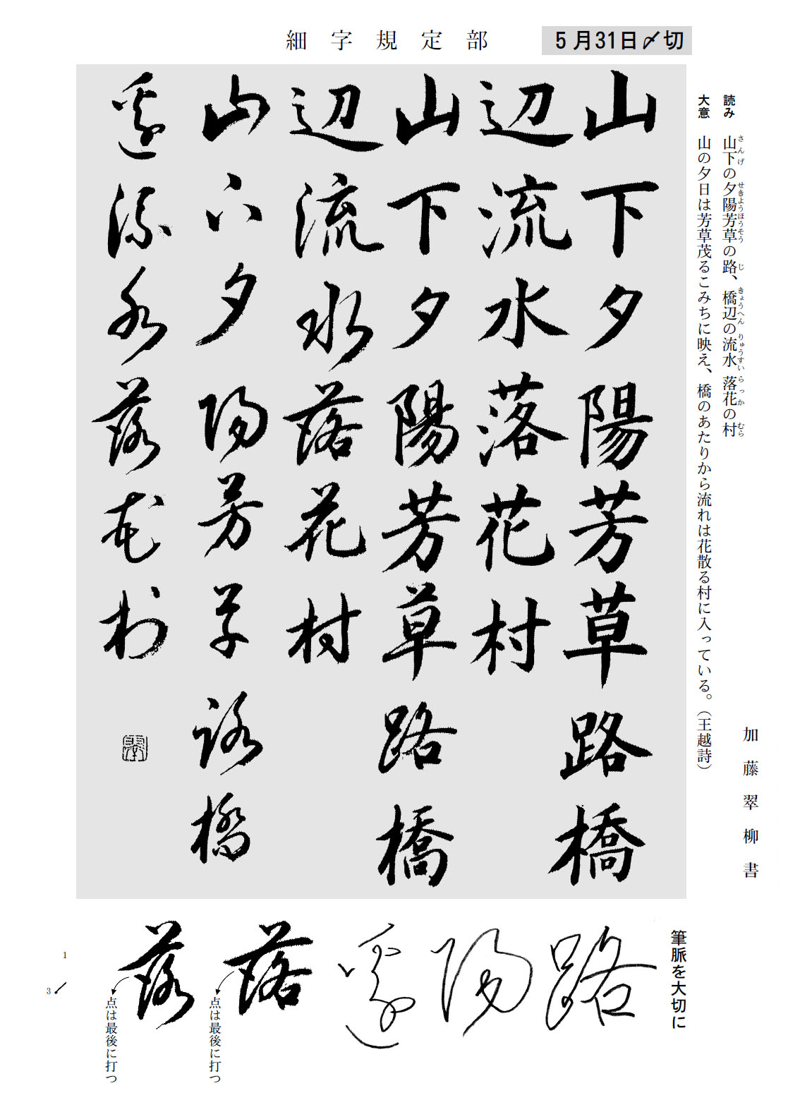 一般部の2018年4月号の競書課題です。