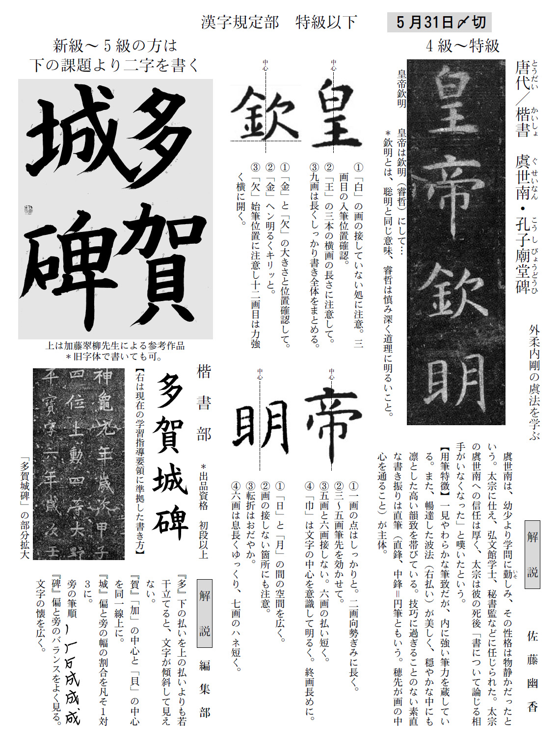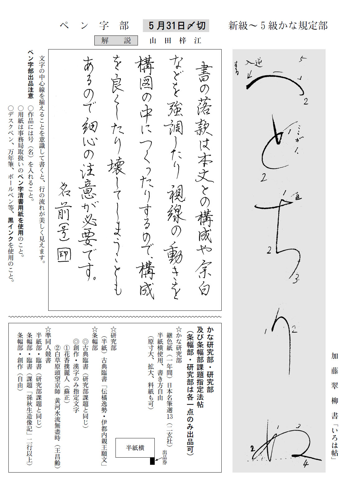一般部の2018年5月号の競書課題です。