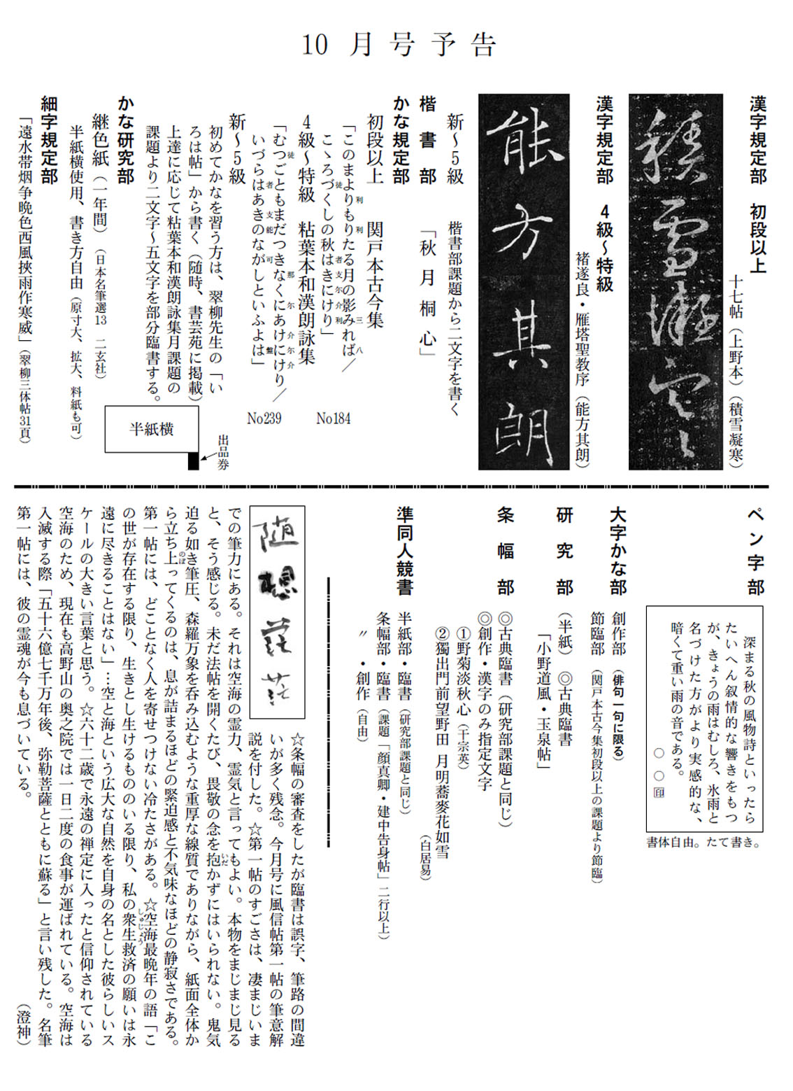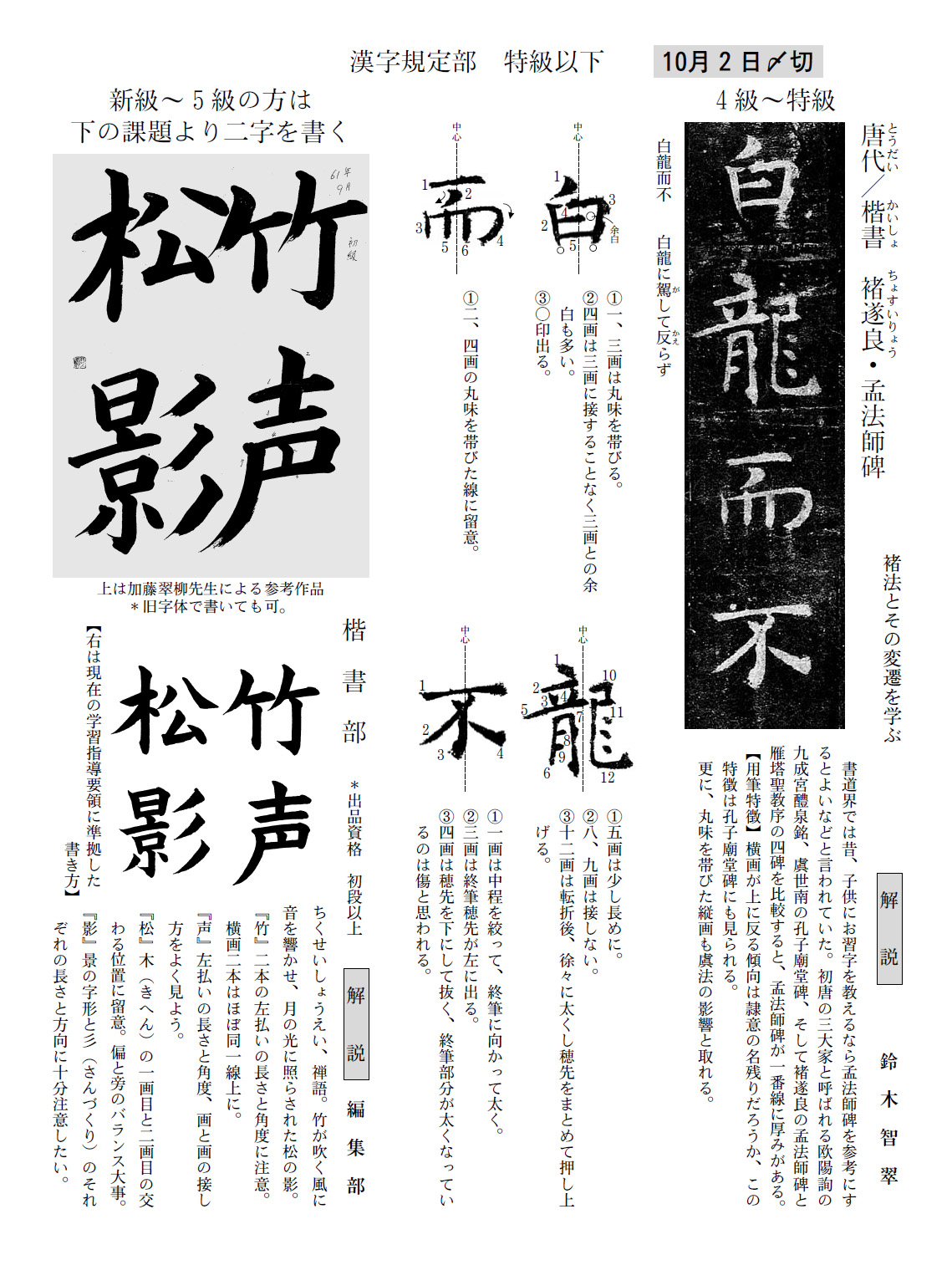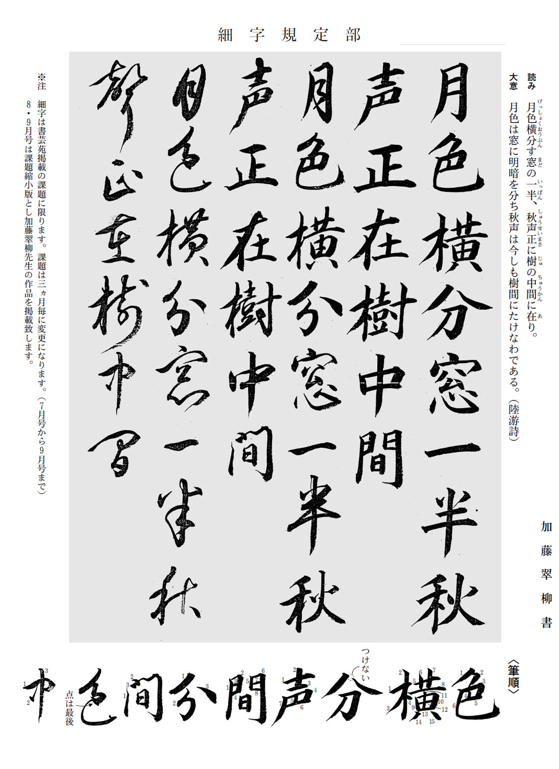 一般部の2018年9月号の競書課題です。