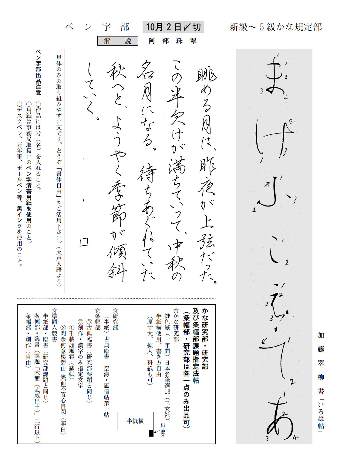 かな規定初級、ペン字