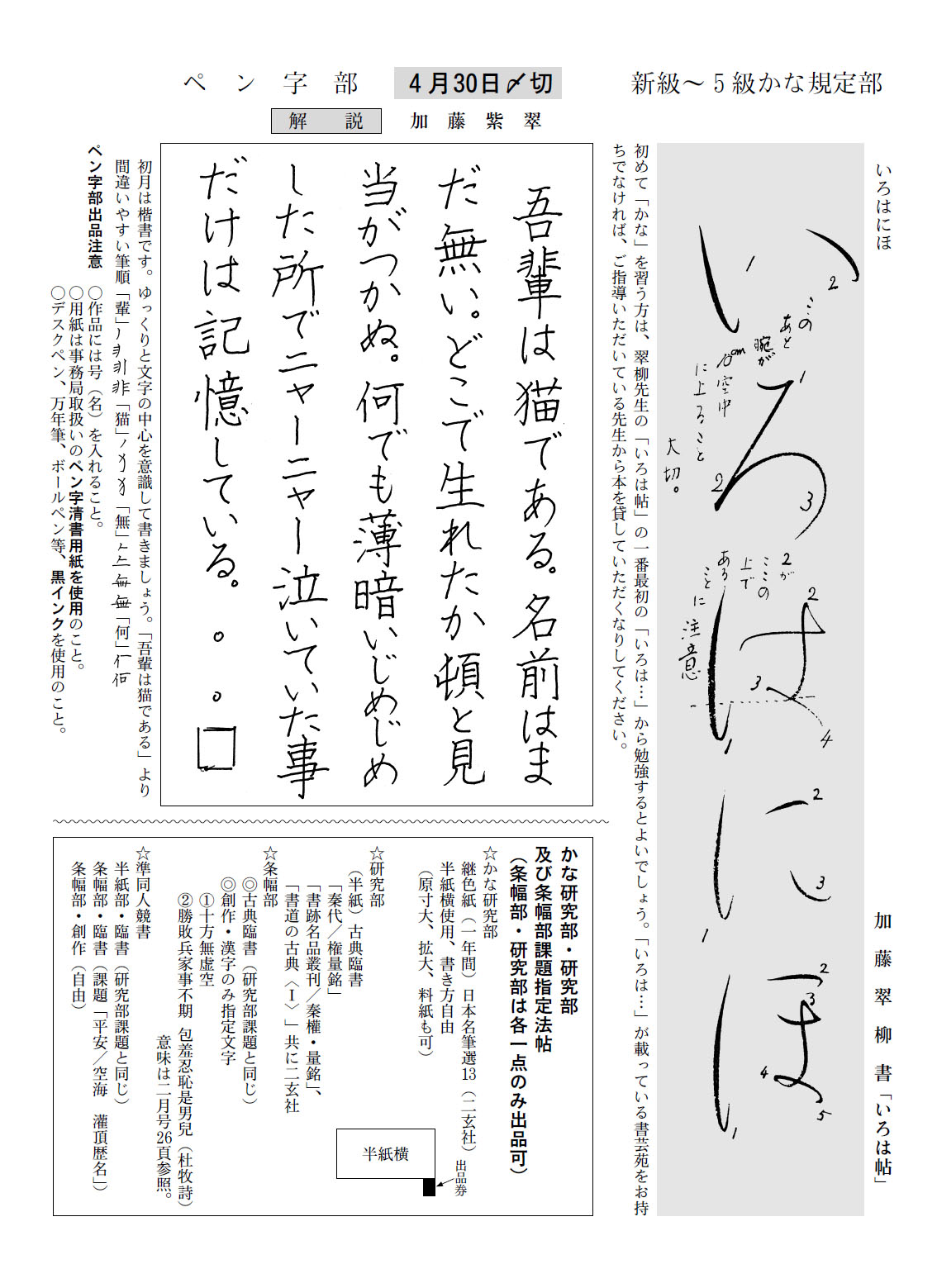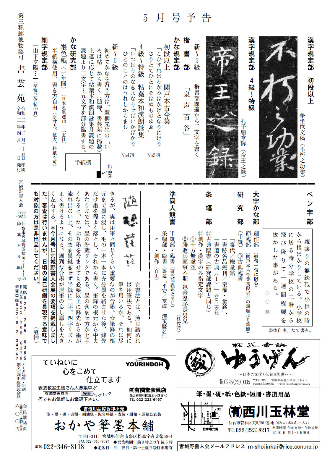 古典臨書研究をベースとして、現代書への展開。漢字、仮名、詩文書、少字・墨象等多彩な書の勉強が可能です。学生部もあります。