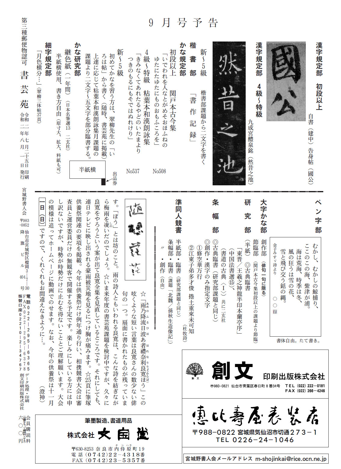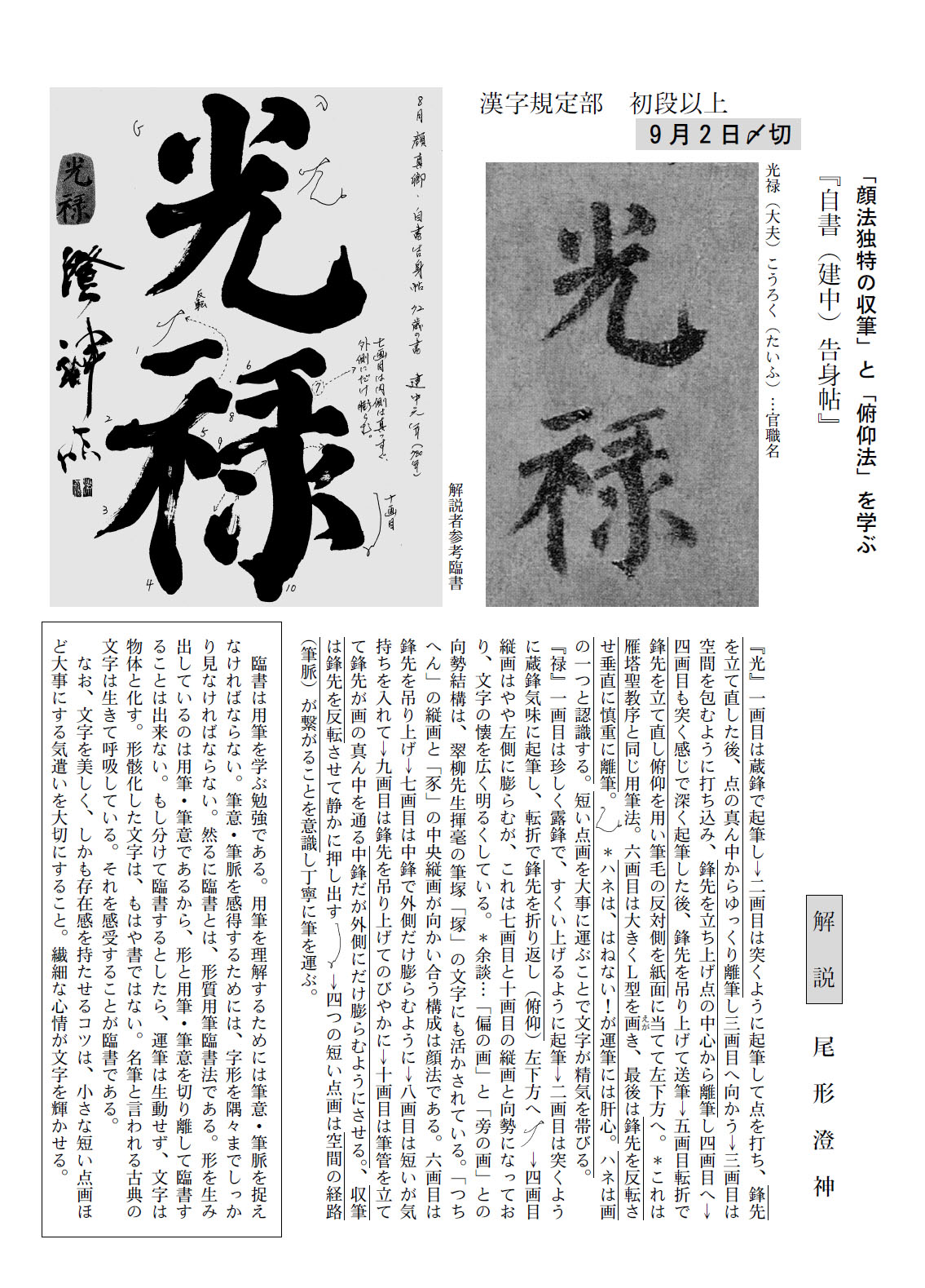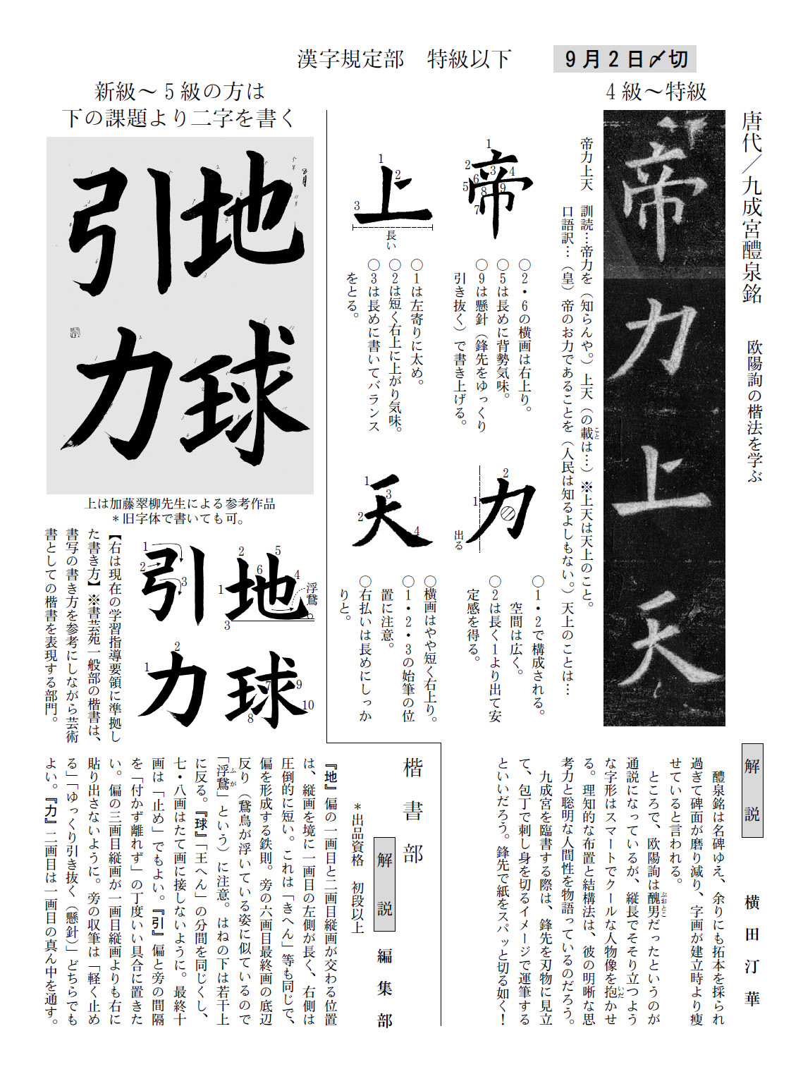 一般部の2020年8月号の競書課題です。