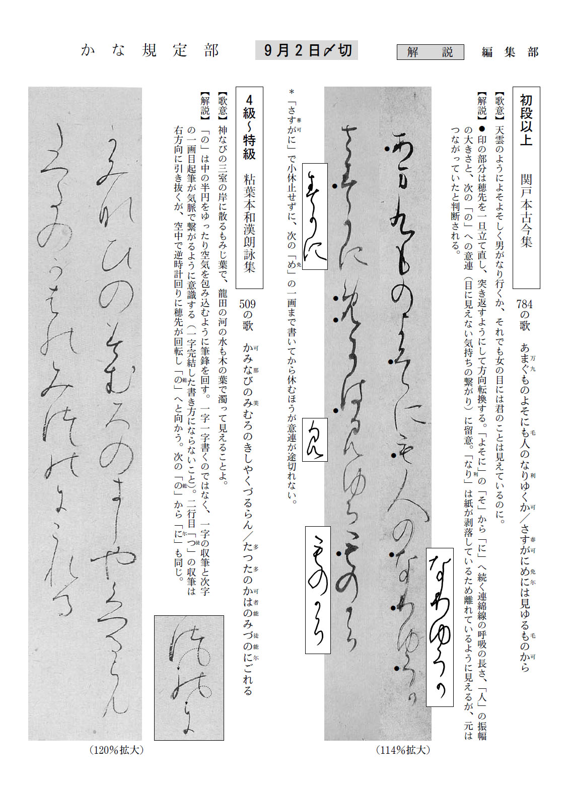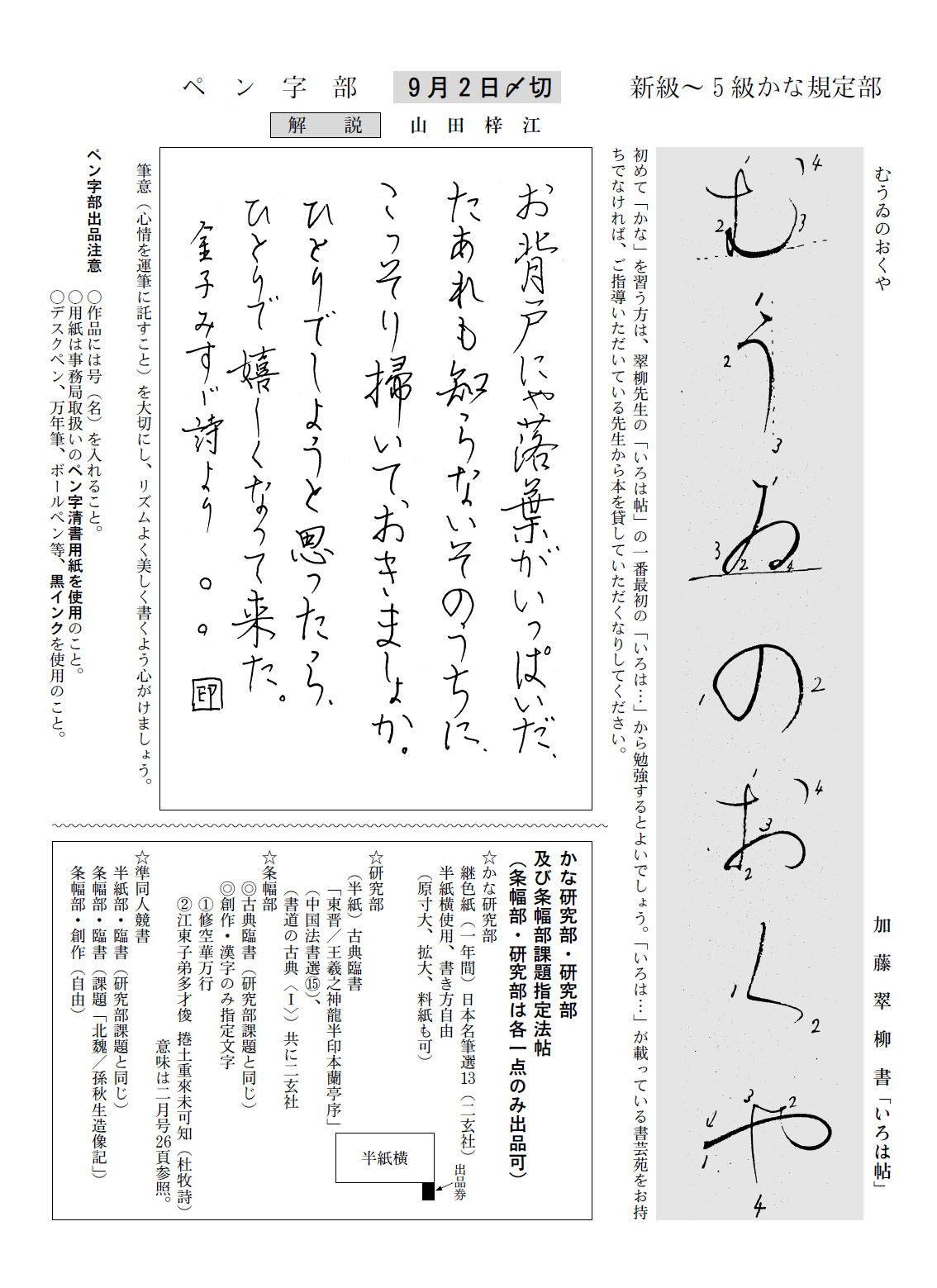 かな規定初級、ペン字