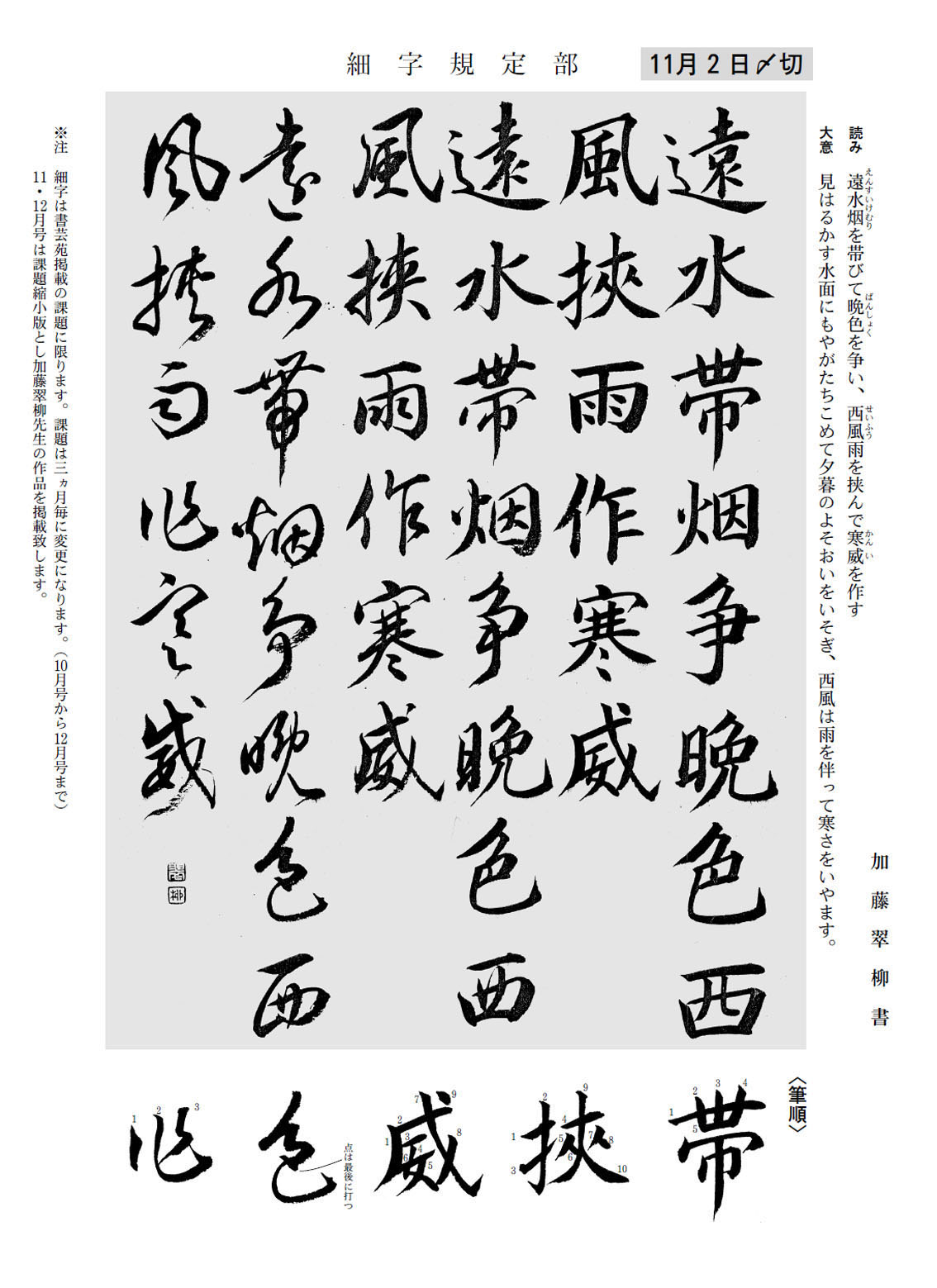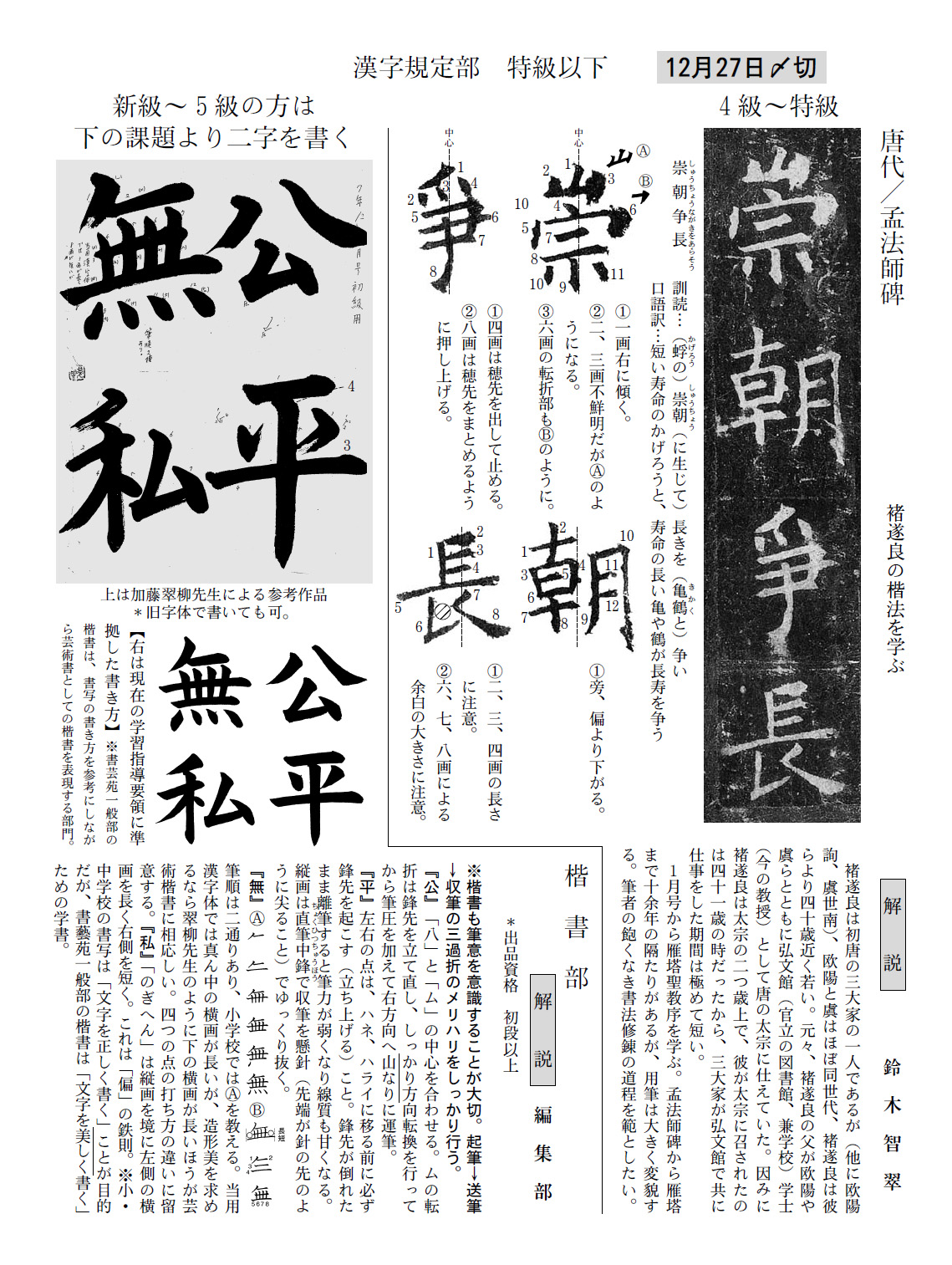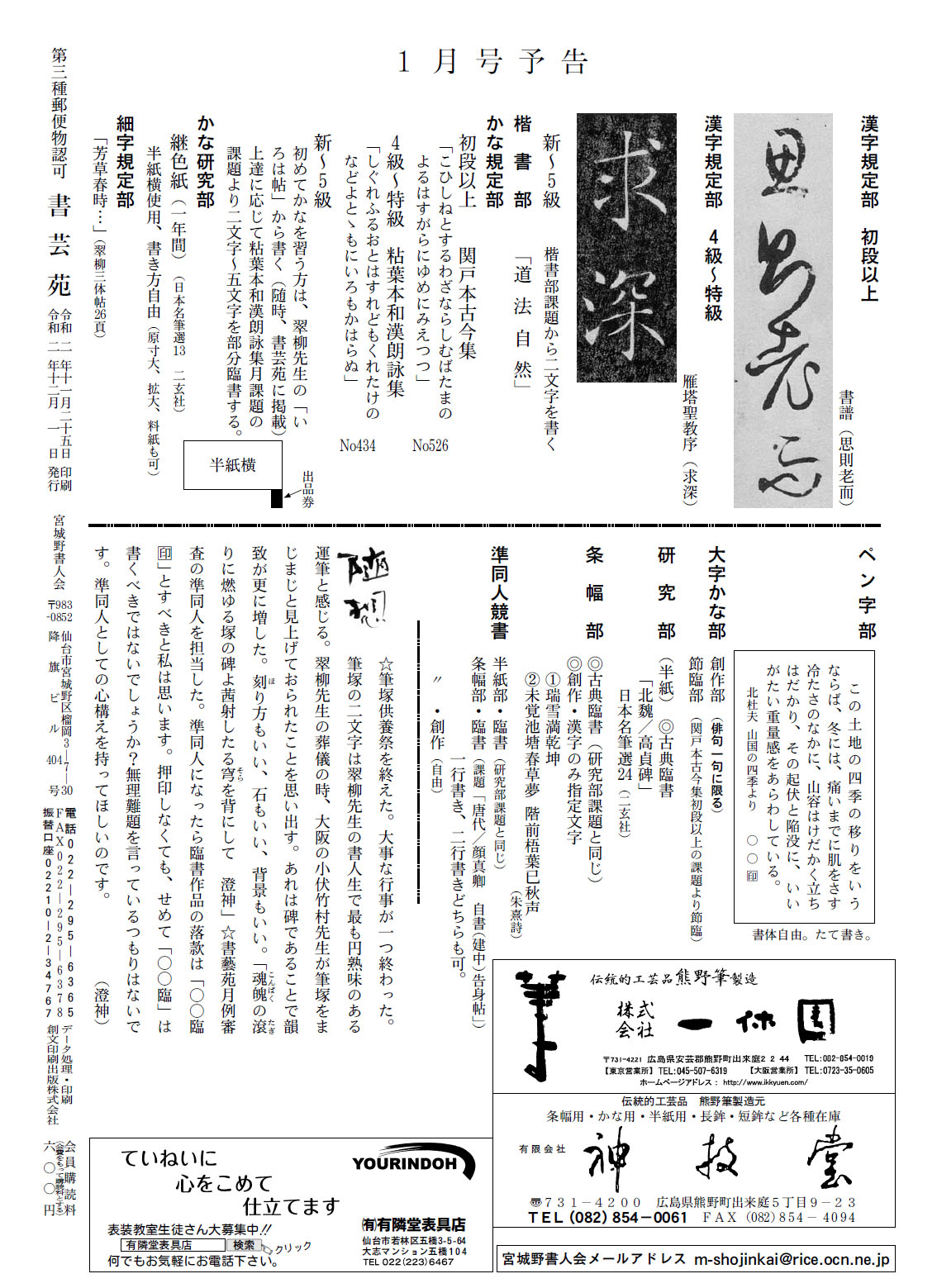 古典臨書研究をベースとして、現代書への展開。漢字、仮名、詩文書、少字・墨象等多彩な書の勉強が可能です。学生部もあります。
