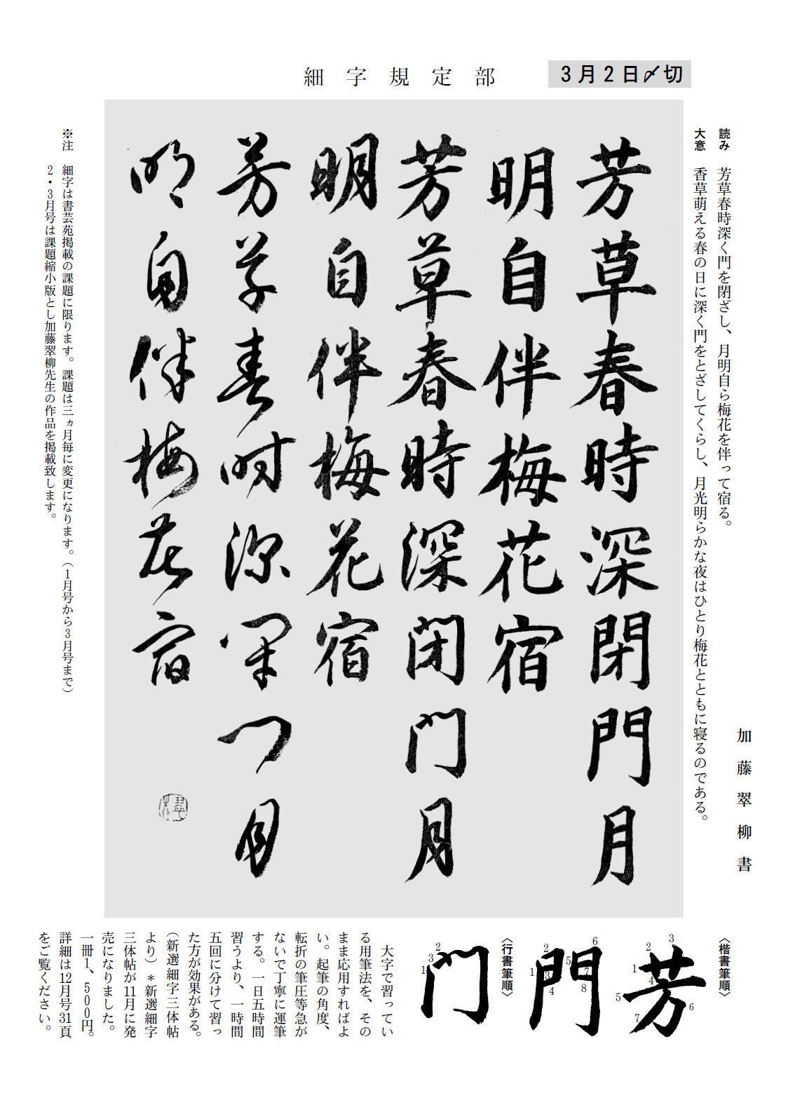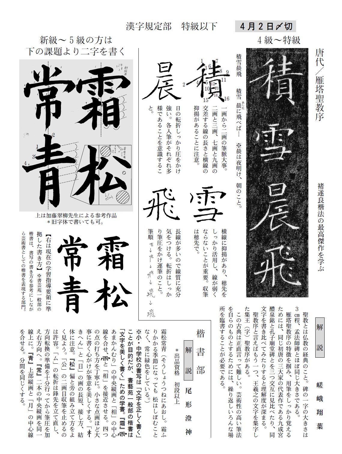 古典臨書研究をベースとして、現代書への展開。漢字、仮名、詩文書、少字・墨象等多彩な書の勉強が可能です。学生部もあります。