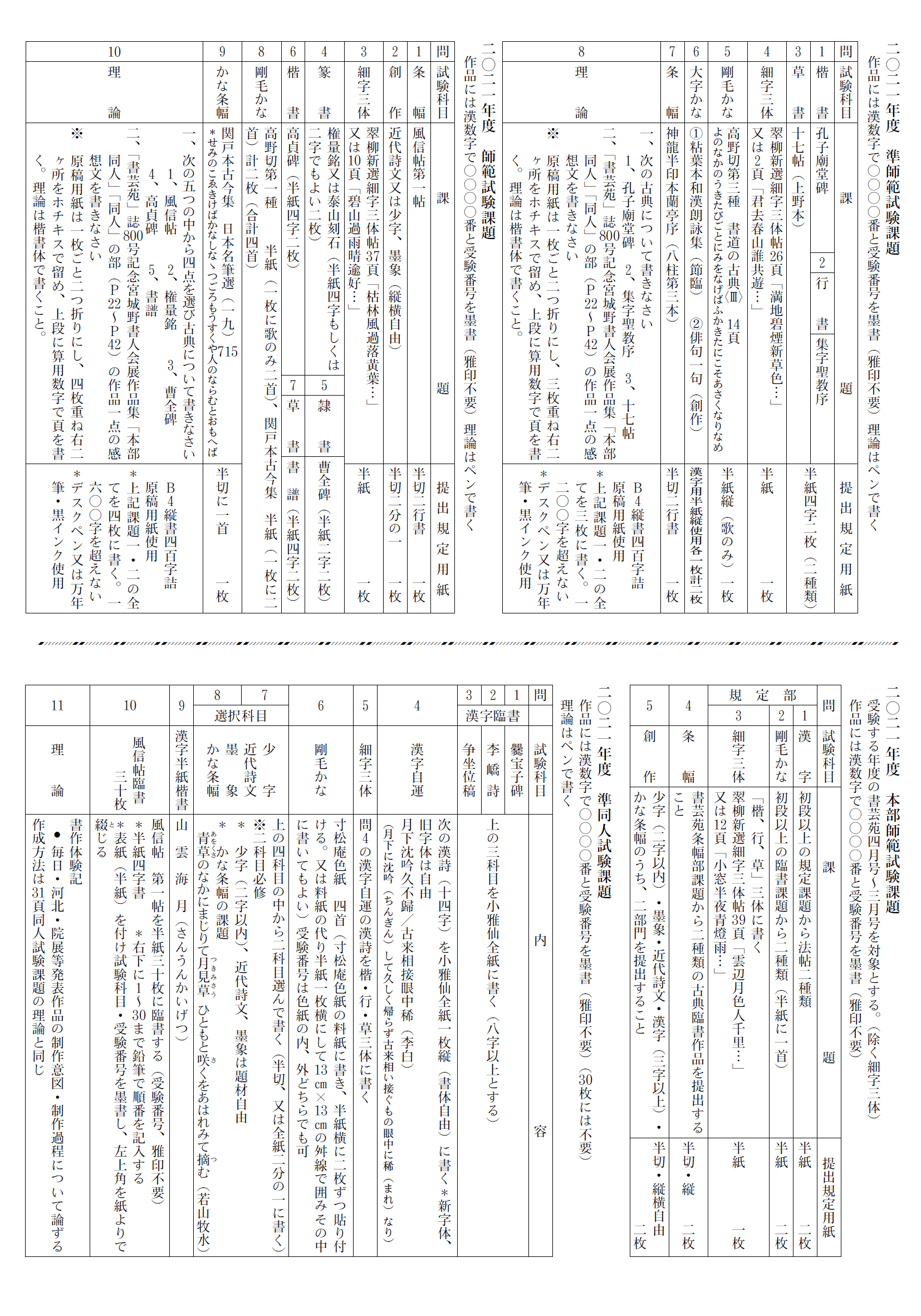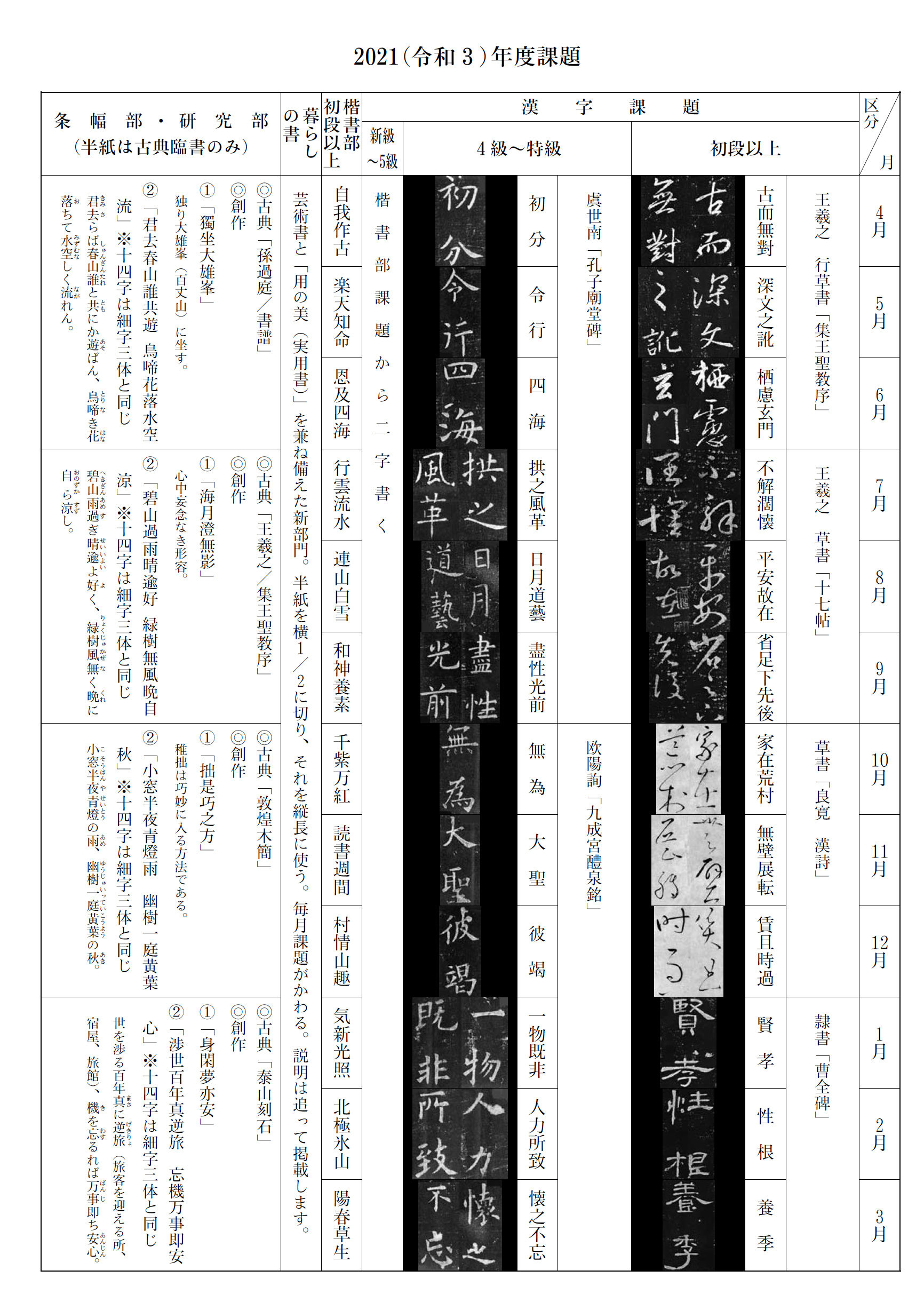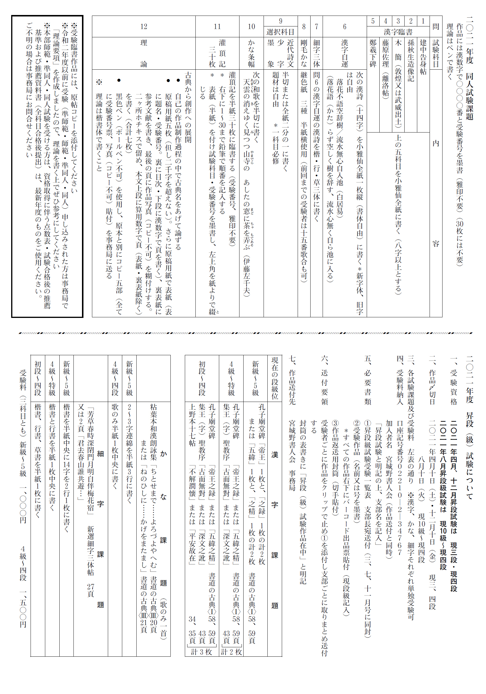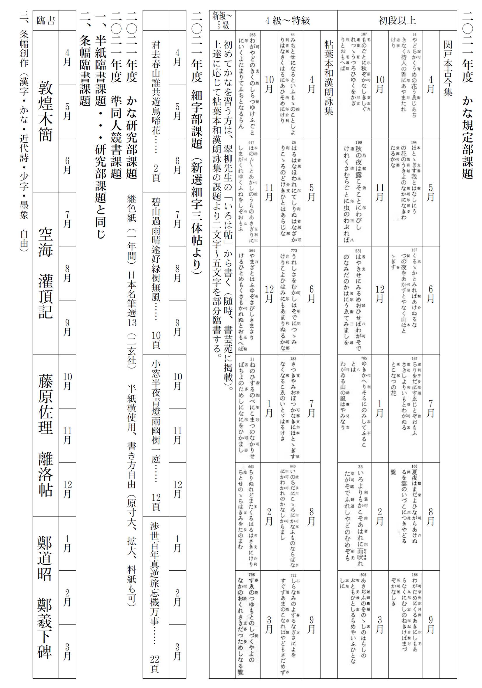 2021年の競書課題一覧・資格試験要項