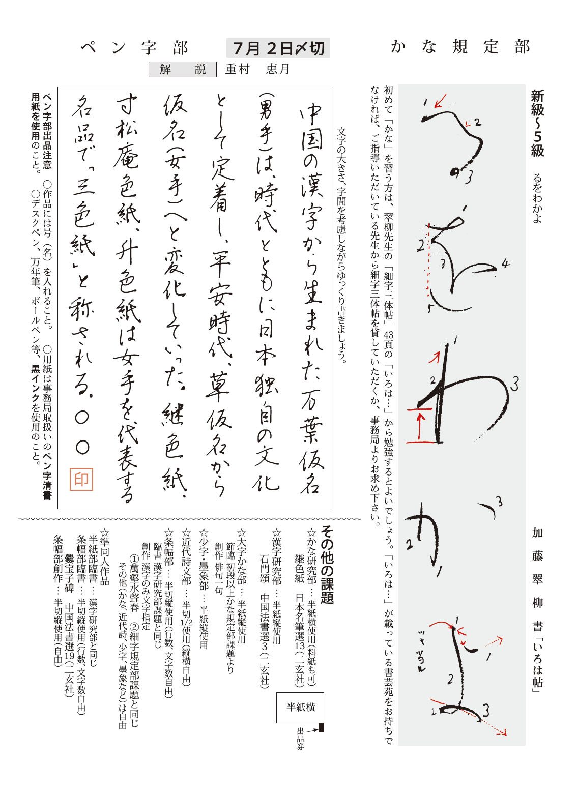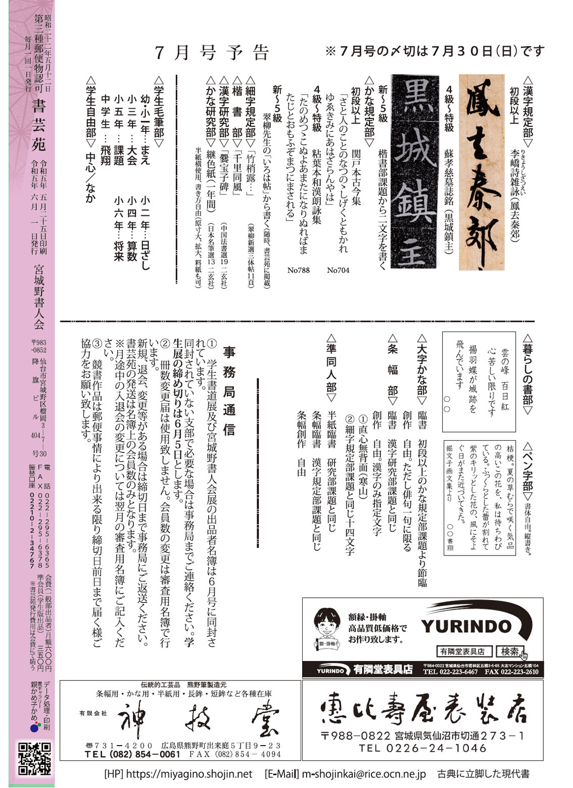 古典臨書研究をベースとして、現代書への展開。漢字、仮名、詩文書、少字・墨象等多彩な書の勉強が可能です。学生部もあります。