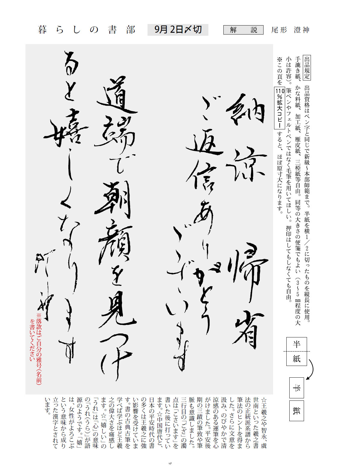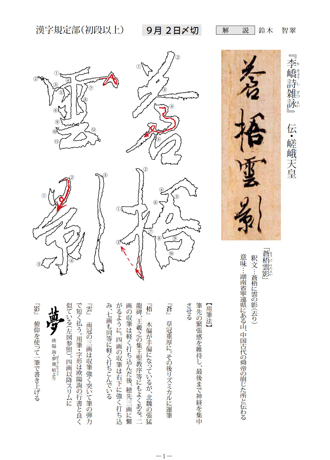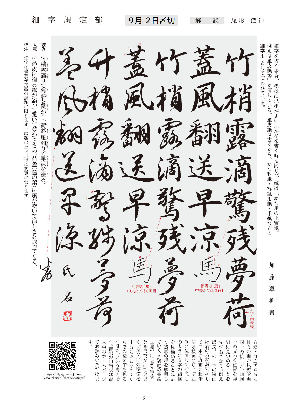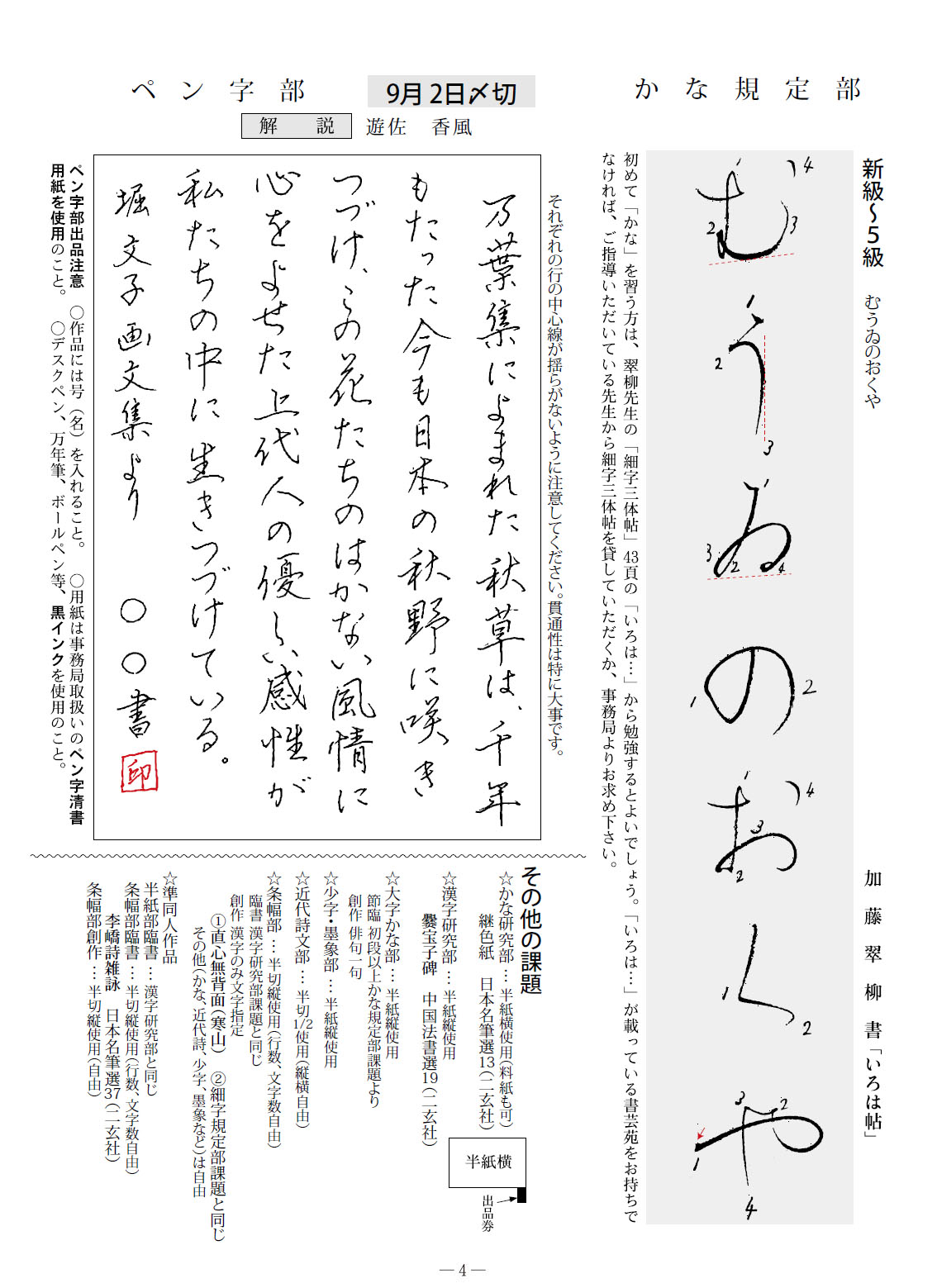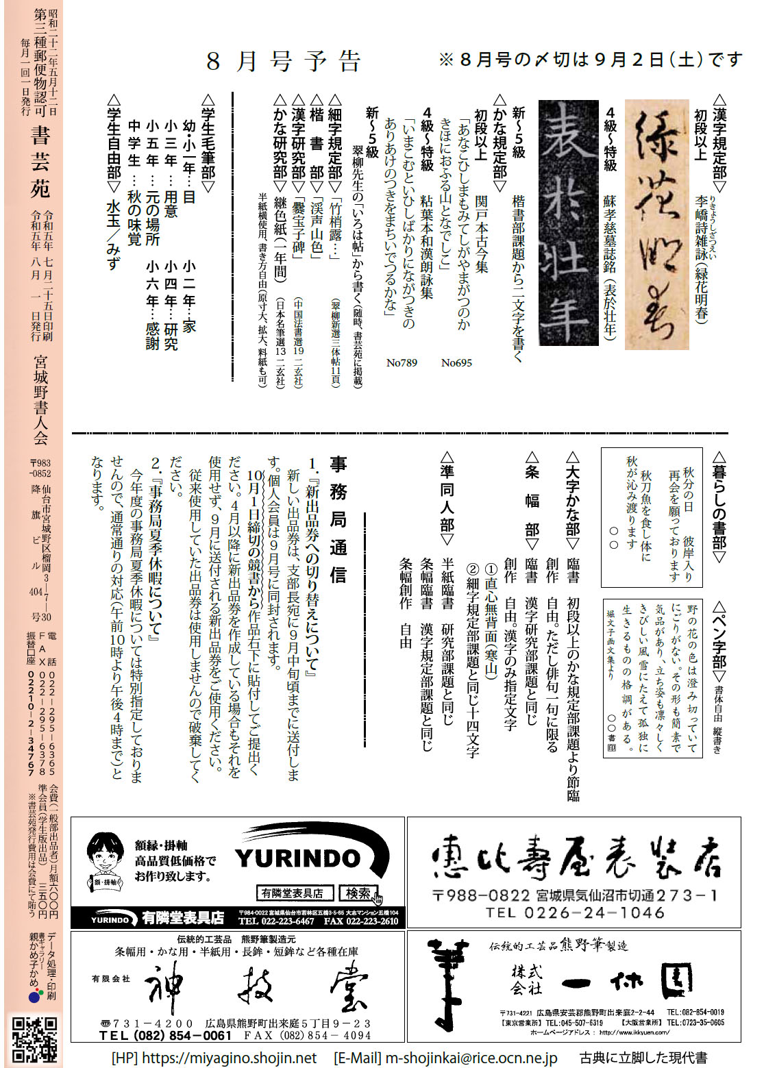 古典臨書研究をベースとして、現代書への展開。漢字、仮名、詩文書、少字・墨象等多彩な書の勉強が可能です。学生部もあります。