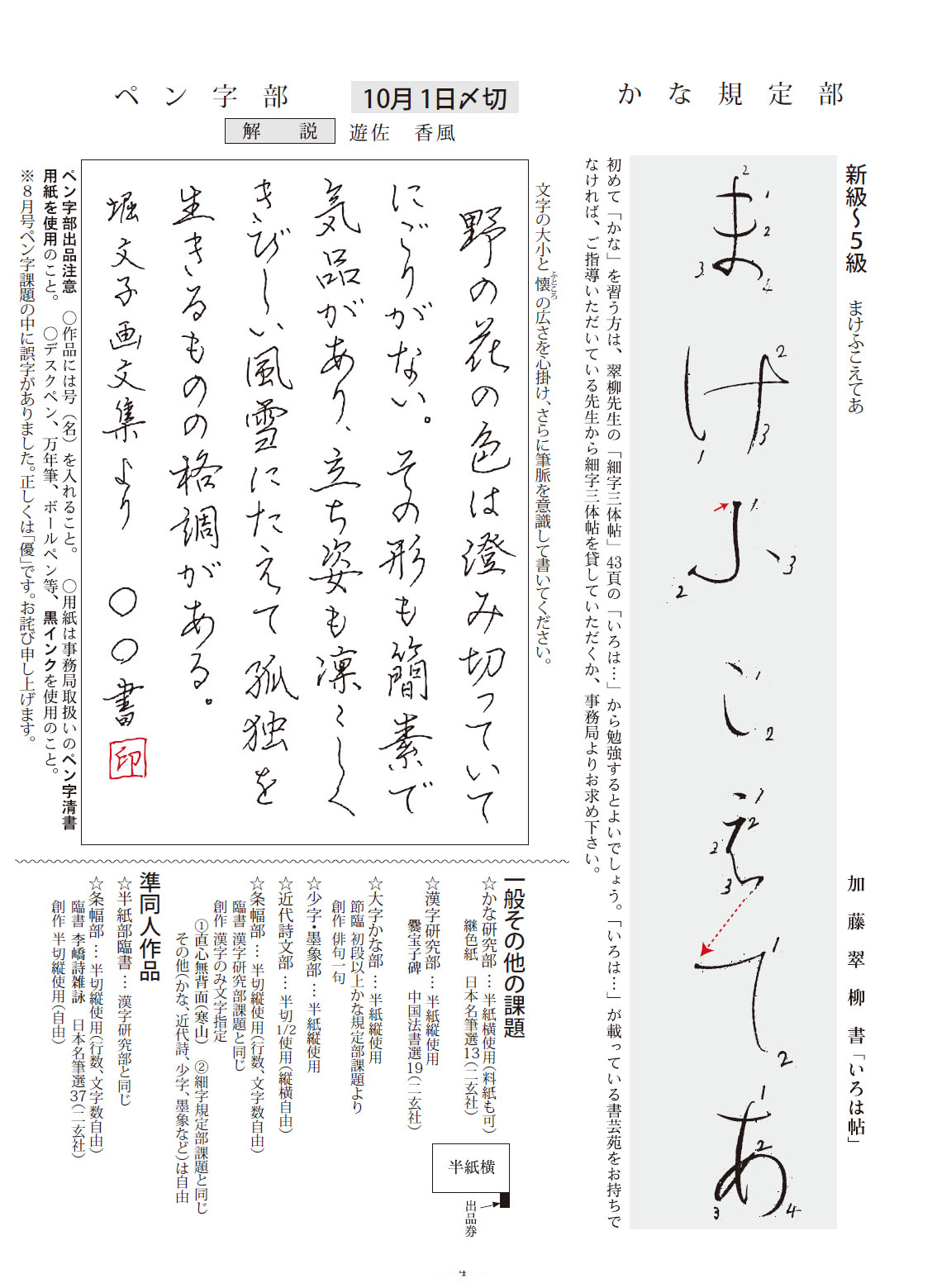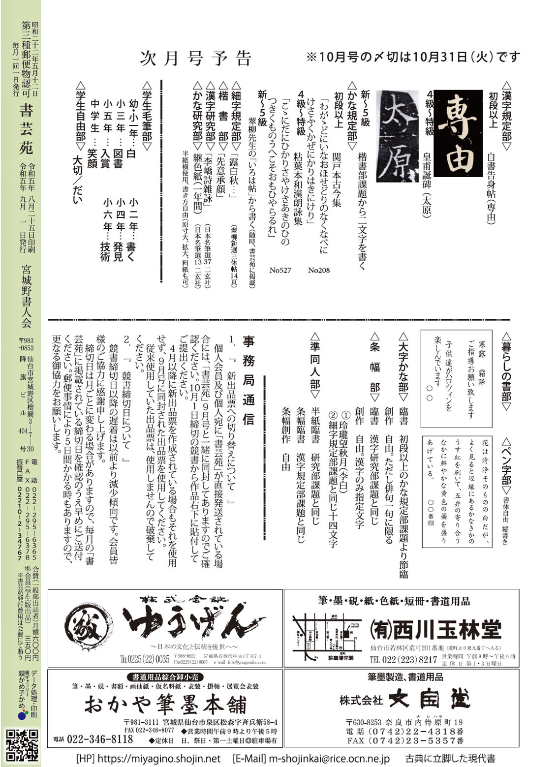 古典臨書研究をベースとして、現代書への展開。漢字、仮名、詩文書、少字・墨象等多彩な書の勉強が可能です。学生部もあります。