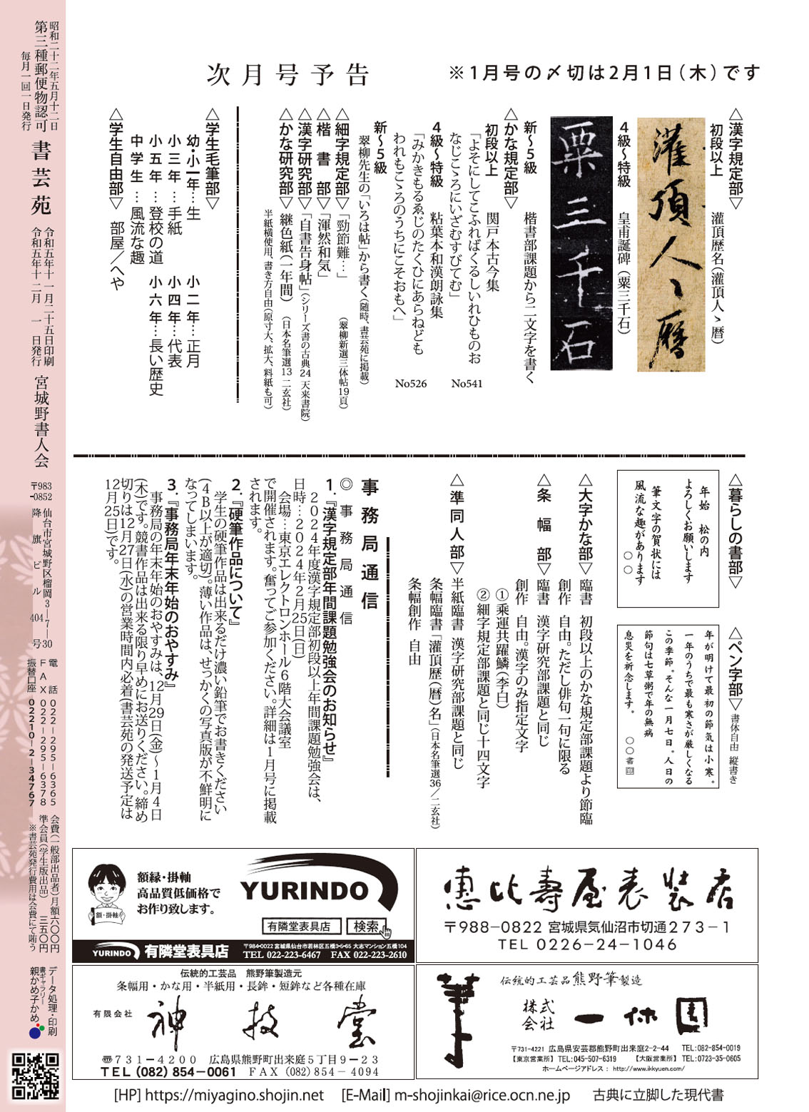 古典臨書研究をベースとして、現代書への展開。漢字、仮名、詩文書、少字・墨象等多彩な書の勉強が可能です。学生部もあります。