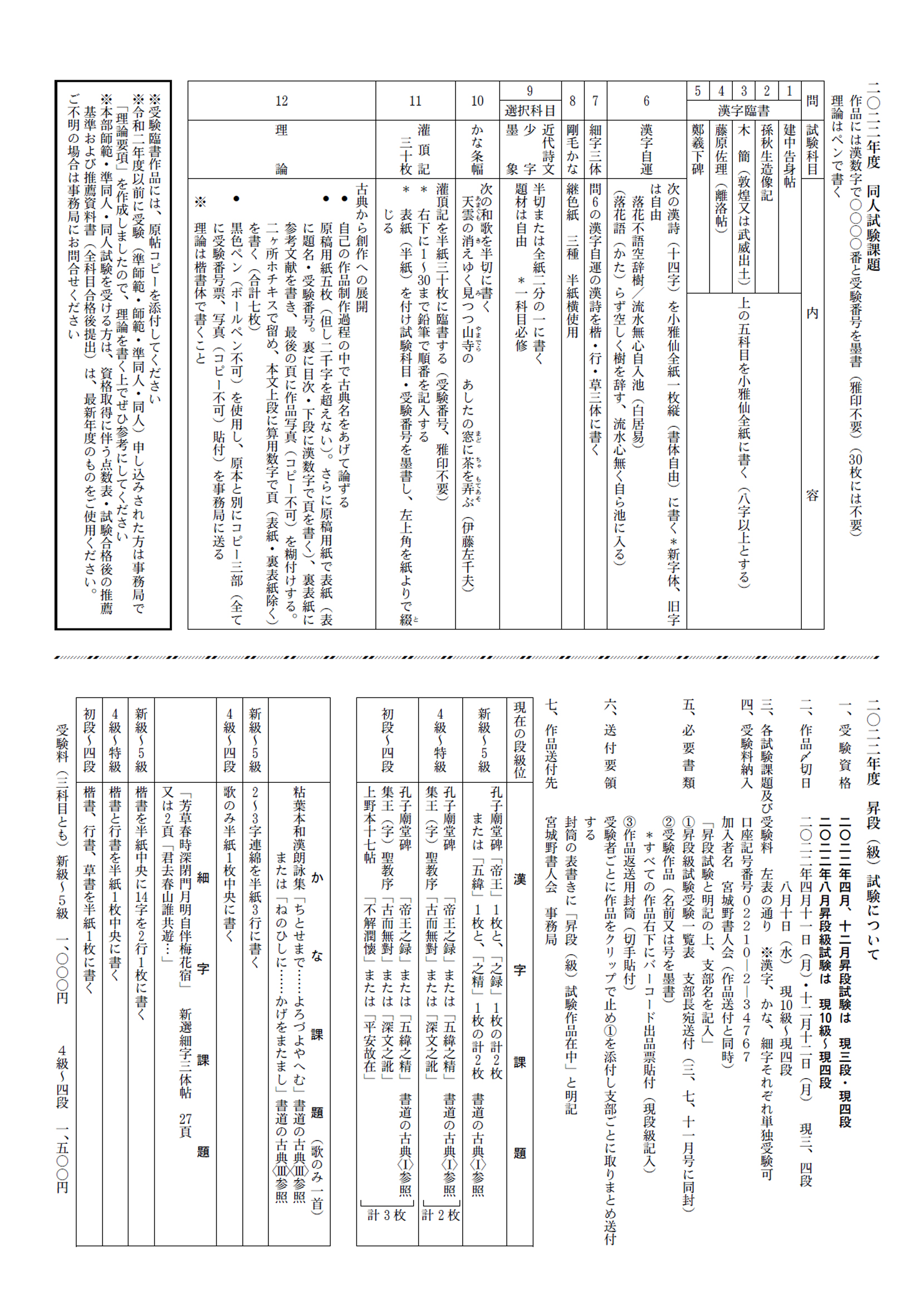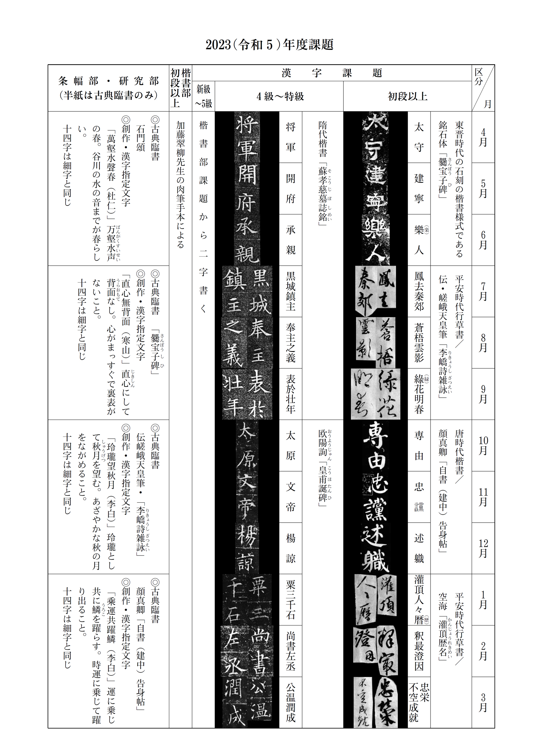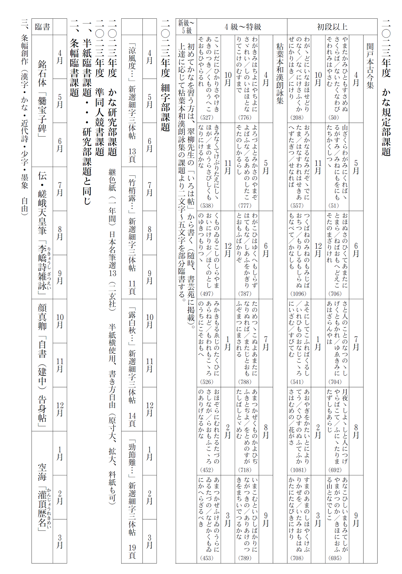 2023年の競書と各種資格試験の日程・課題・手順です。