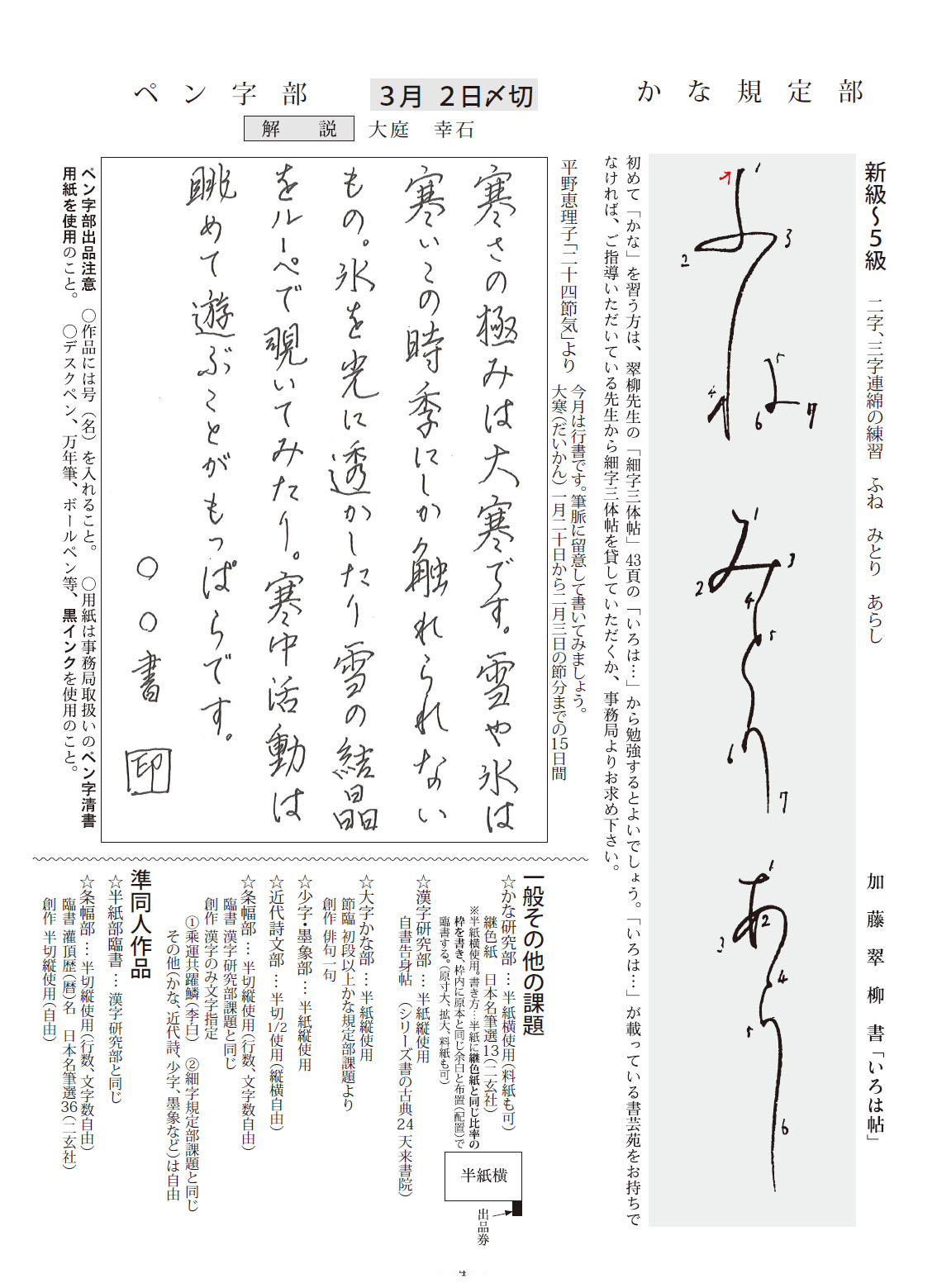 古典臨書研究をベースとして、現代書への展開。漢字、仮名、詩文書、少字・墨象等多彩な書の勉強が可能です。学生部もあります。