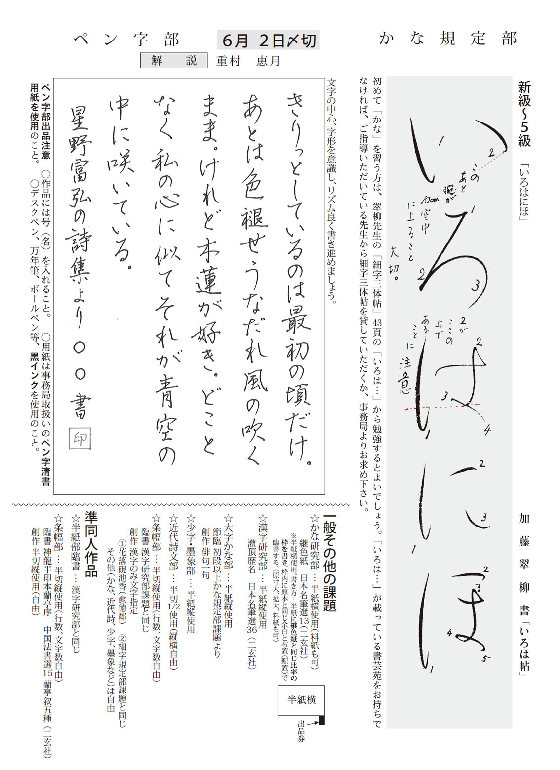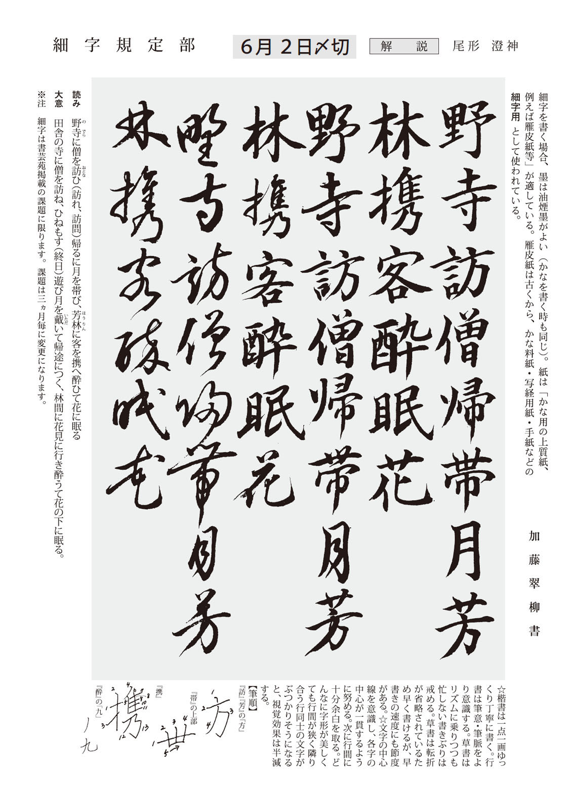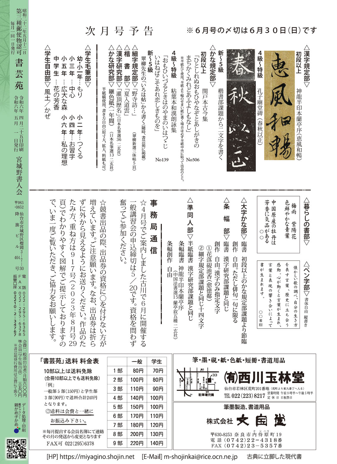 古典臨書研究をベースとして、現代書への展開。漢字、仮名、詩文書、少字・墨象等多彩な書の勉強が可能です。学生部もあります。