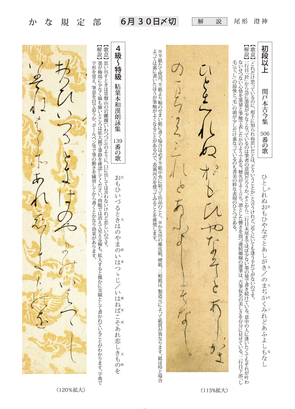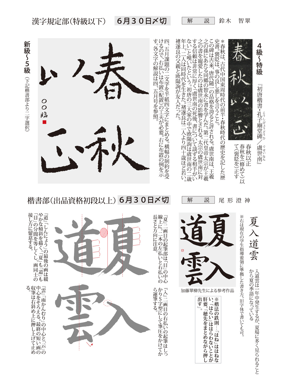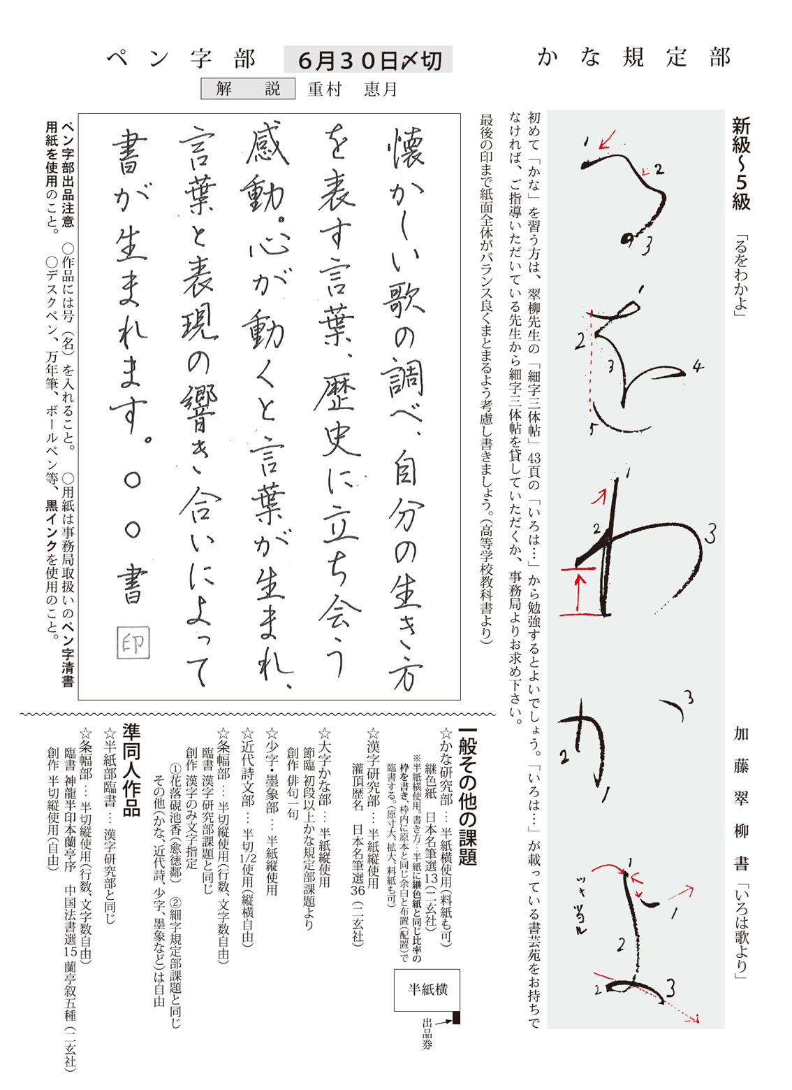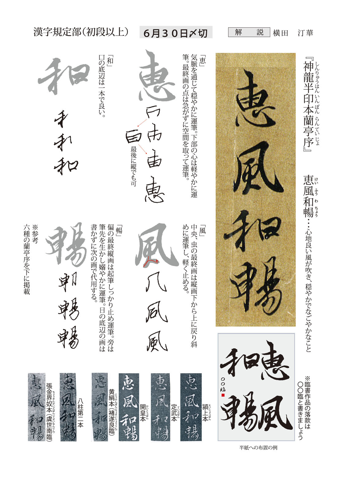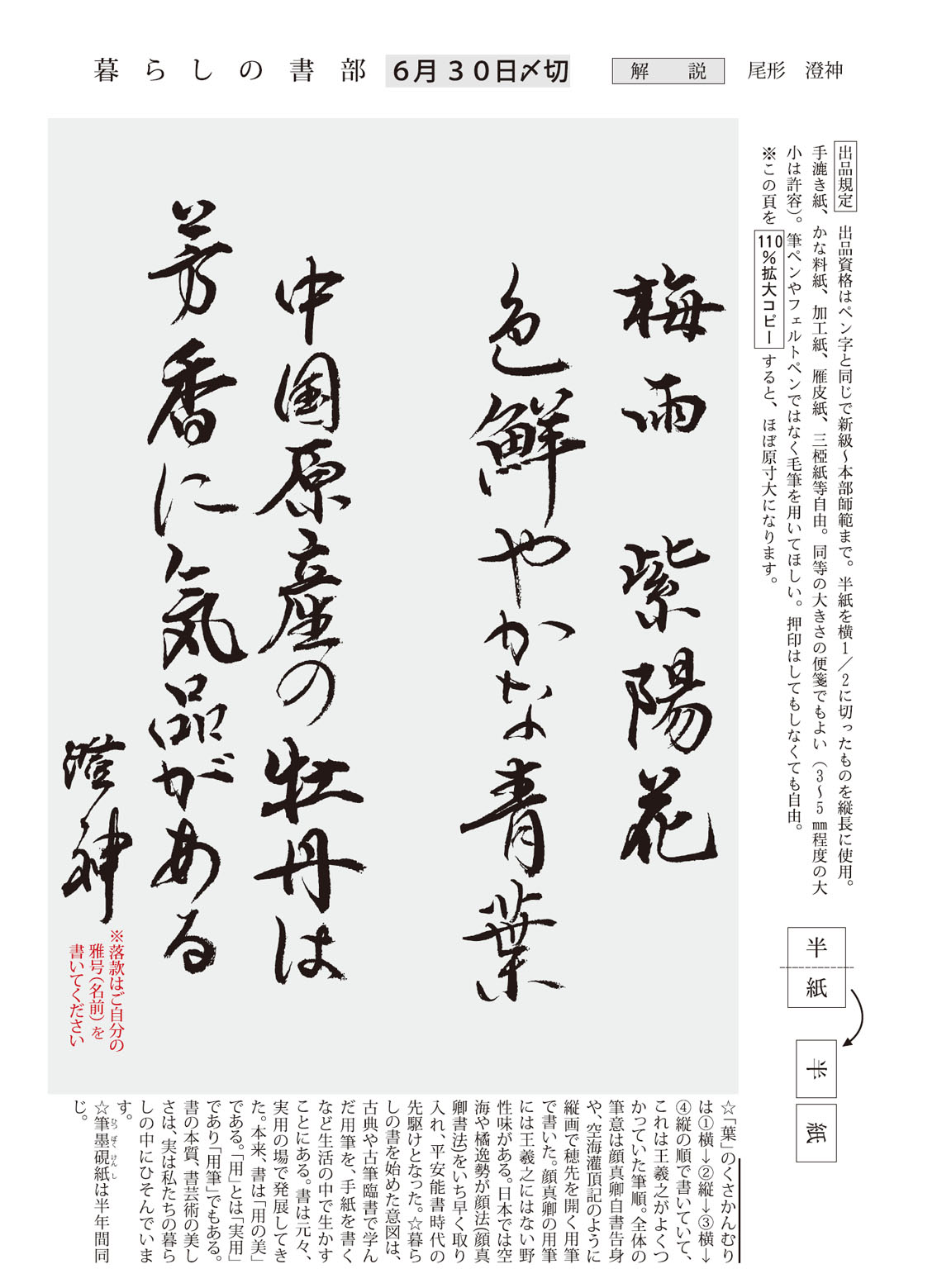 一般部の2024年6月号(927号)の競書課題です。