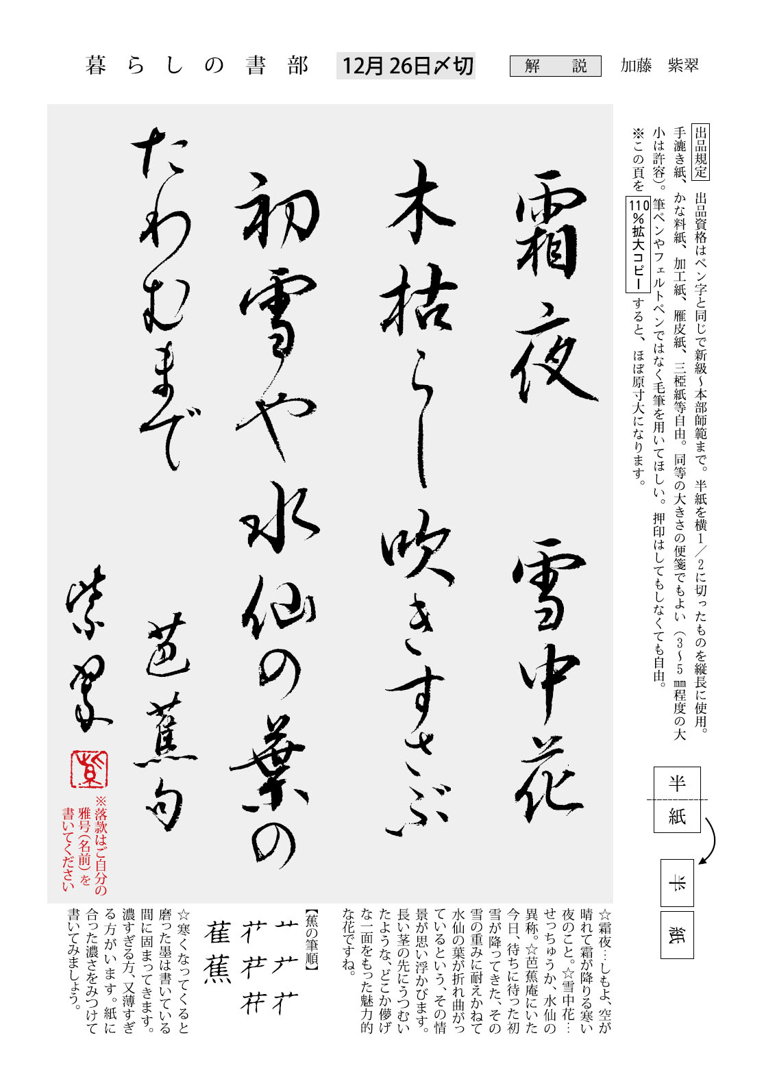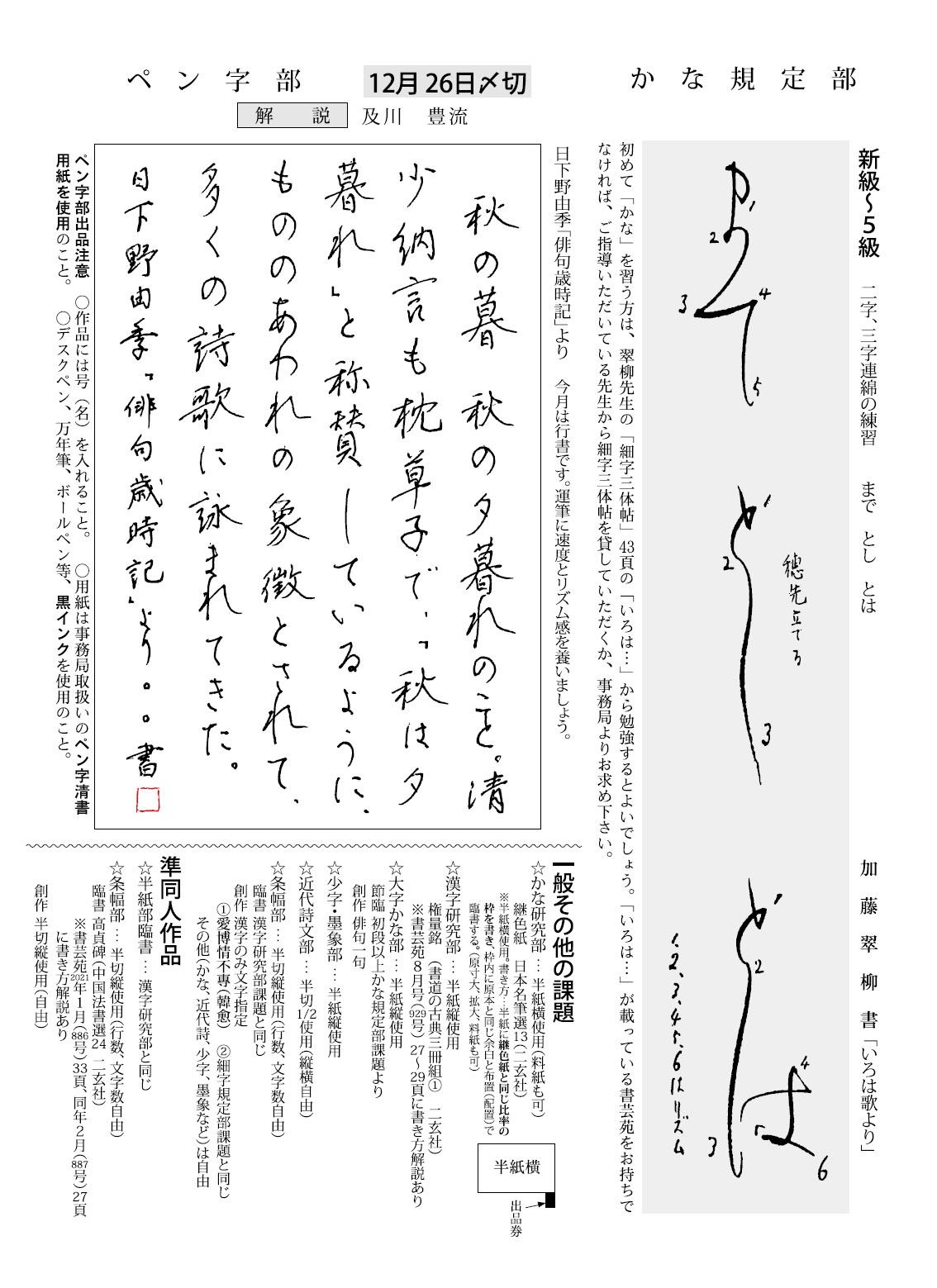 古典臨書研究をベースとして、現代書への展開。漢字、仮名、詩文書、少字・墨象等多彩な書の勉強が可能です。学生部もあります。